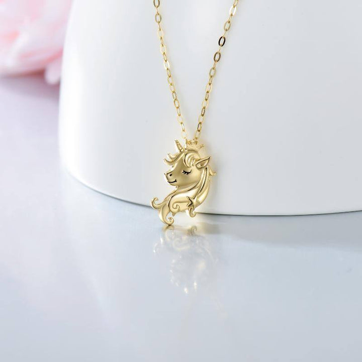 This no-stone Women's Pendant Necklace is crafted from High-Quality 14K Gold, Featuring a Beautifully Detailed Unicorn Pendant.
