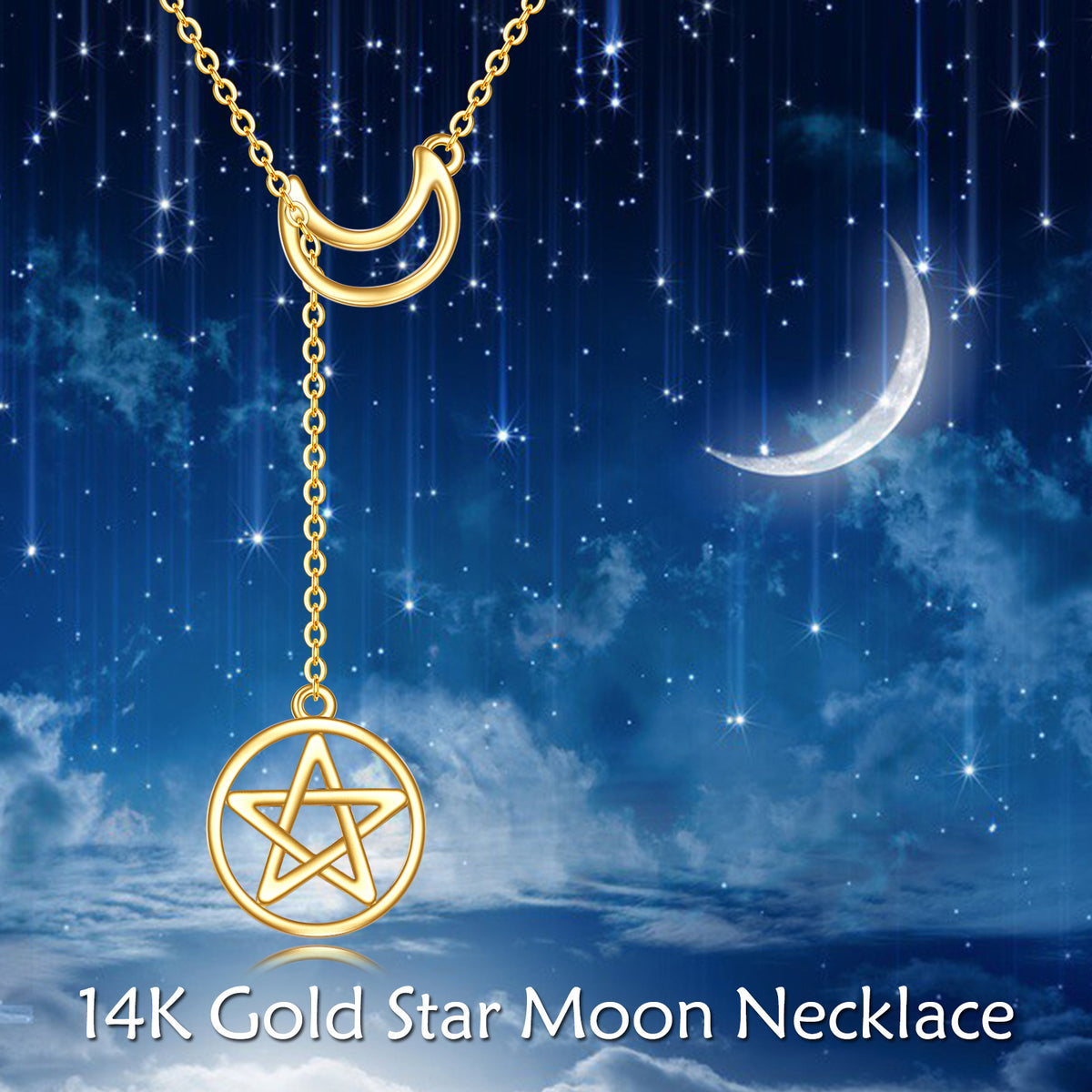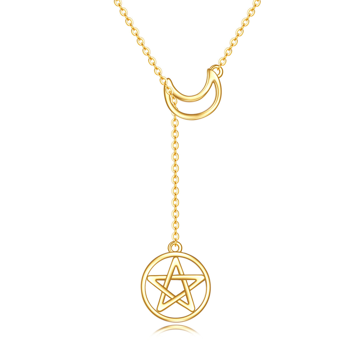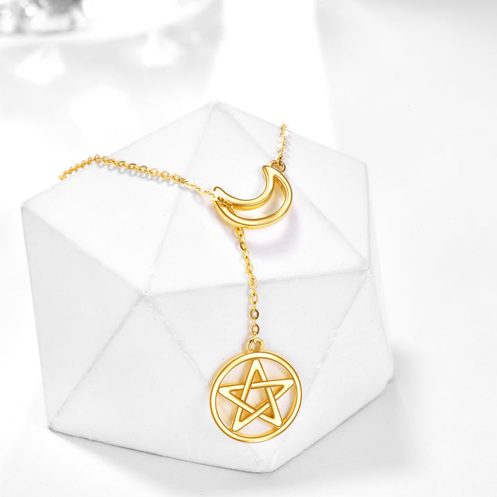 14K Gold Moon & Pentagram Adjustable Y Necklace