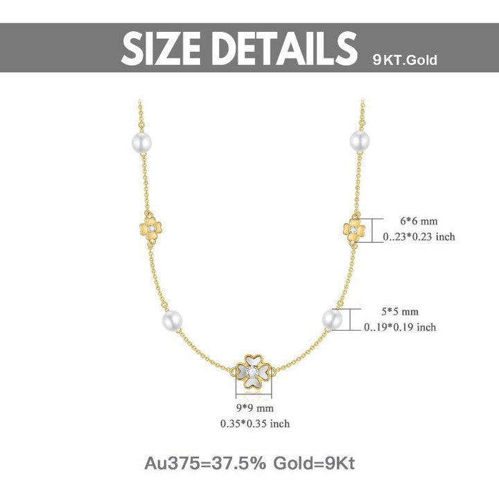 9K Gold Pearl & Cubic Zirconia Four-leaf Clover Metal Choker Necklace