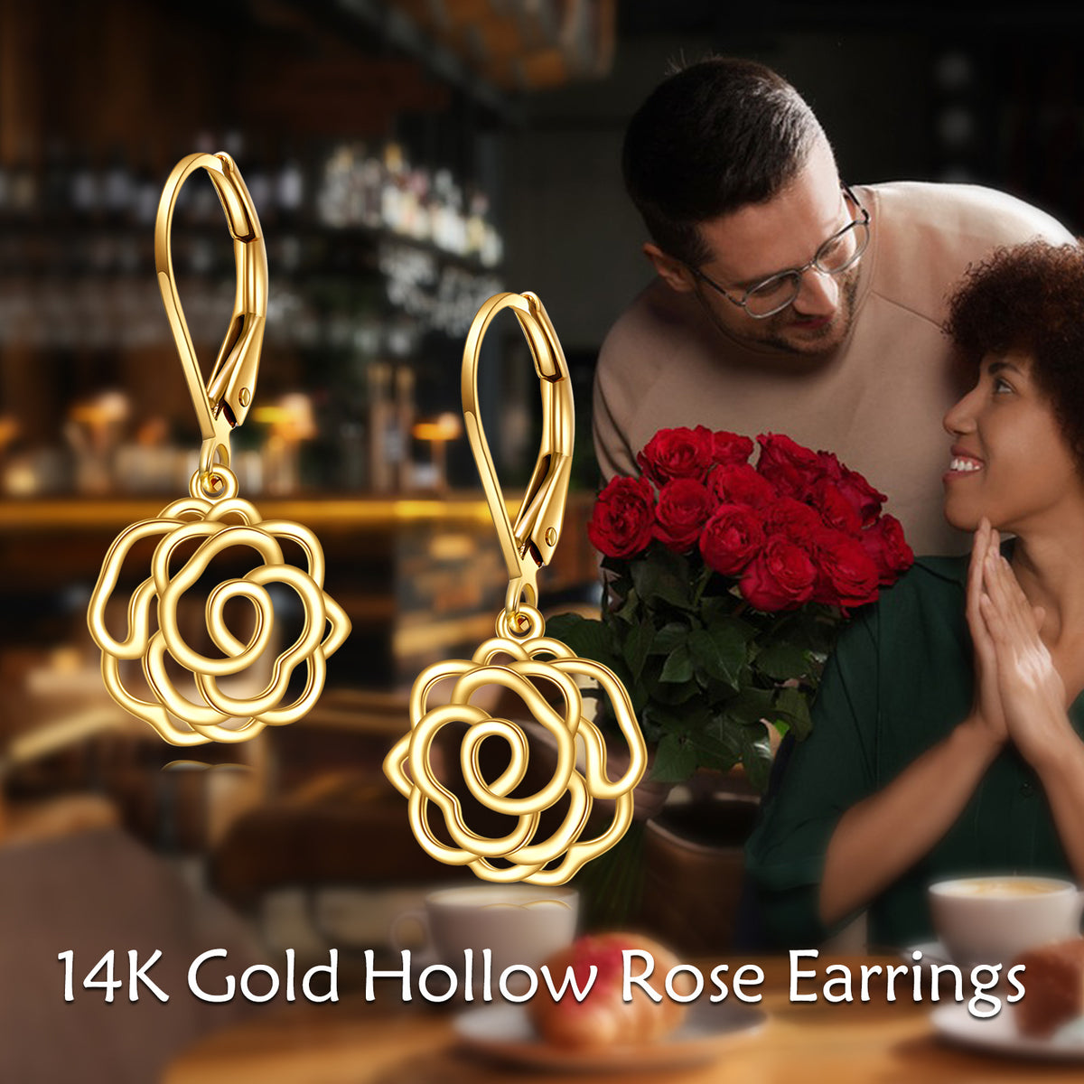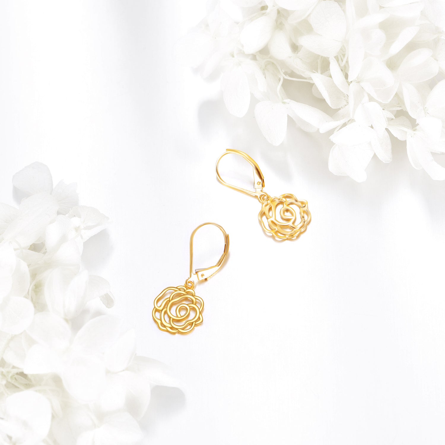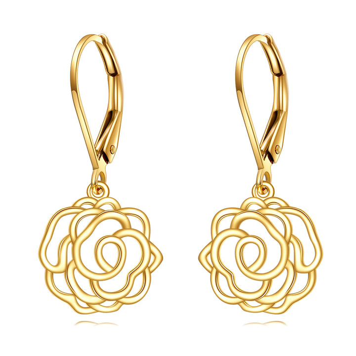 14K Gold Rose Drop Earrings