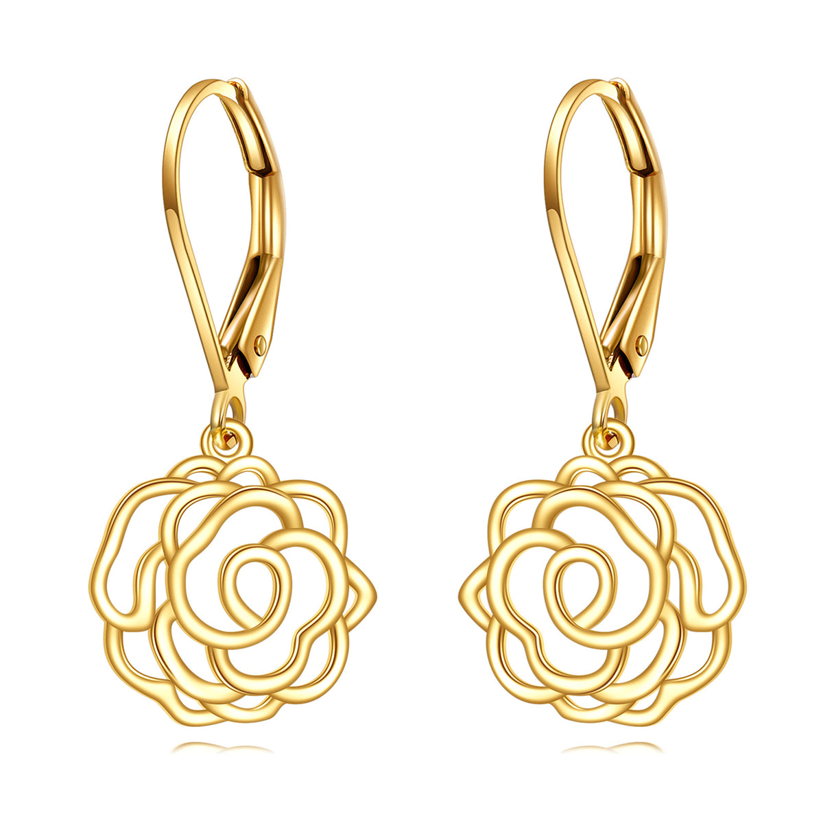 Crafted from high-quality 14K Gold, these stone-free Drop Earrings feature a graceful Rose shape.