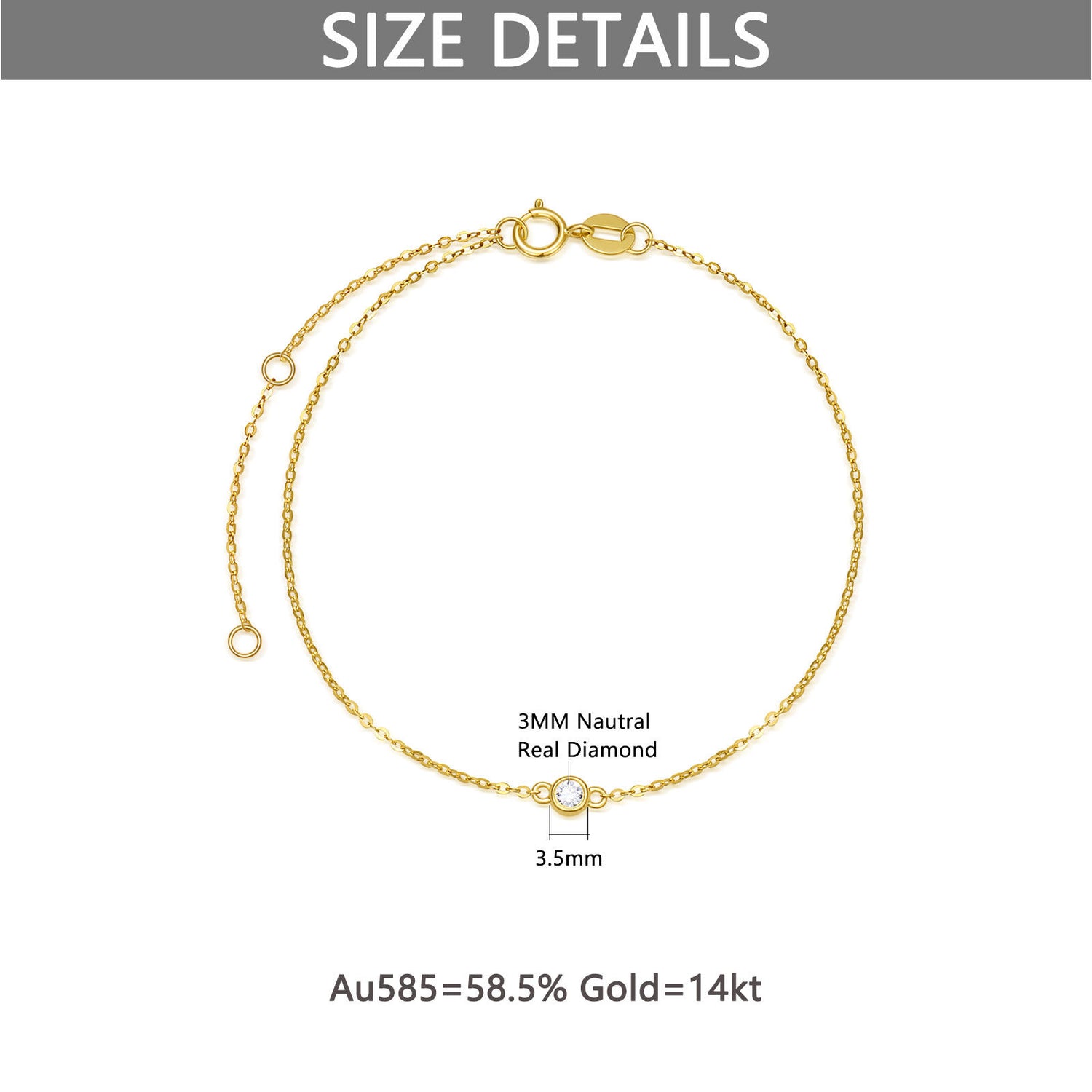 14K gold chain; diamond accents; charm bracelet design.