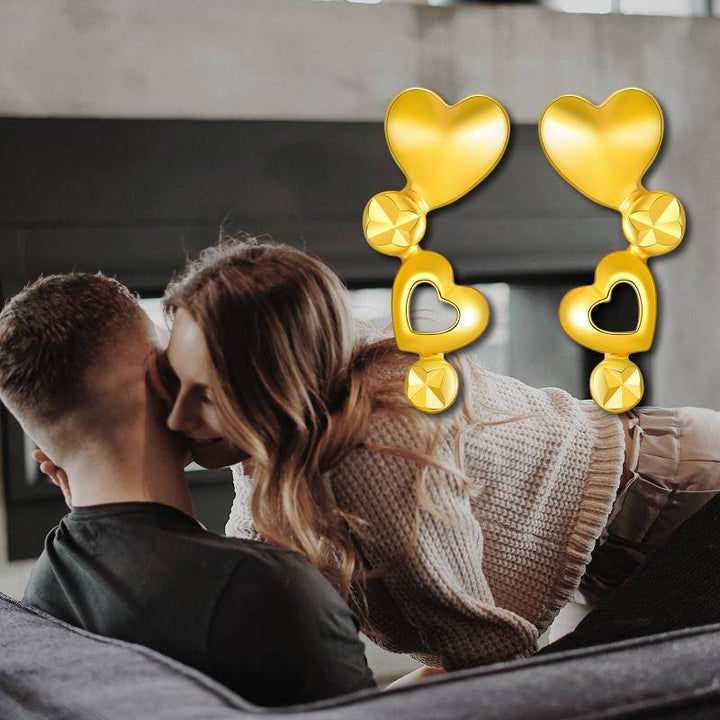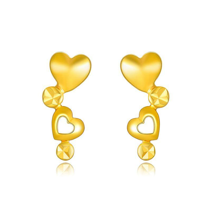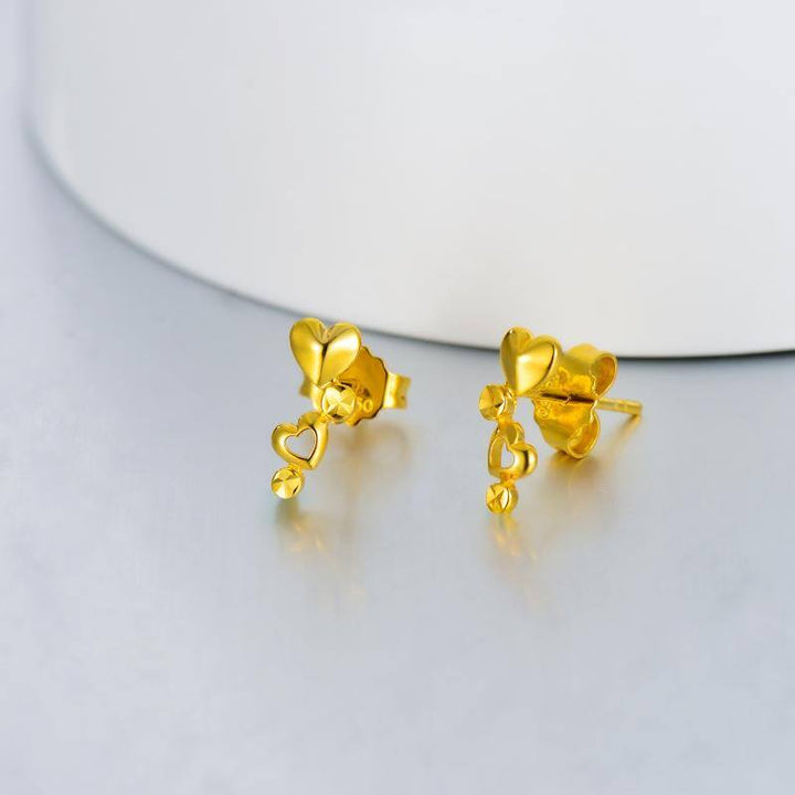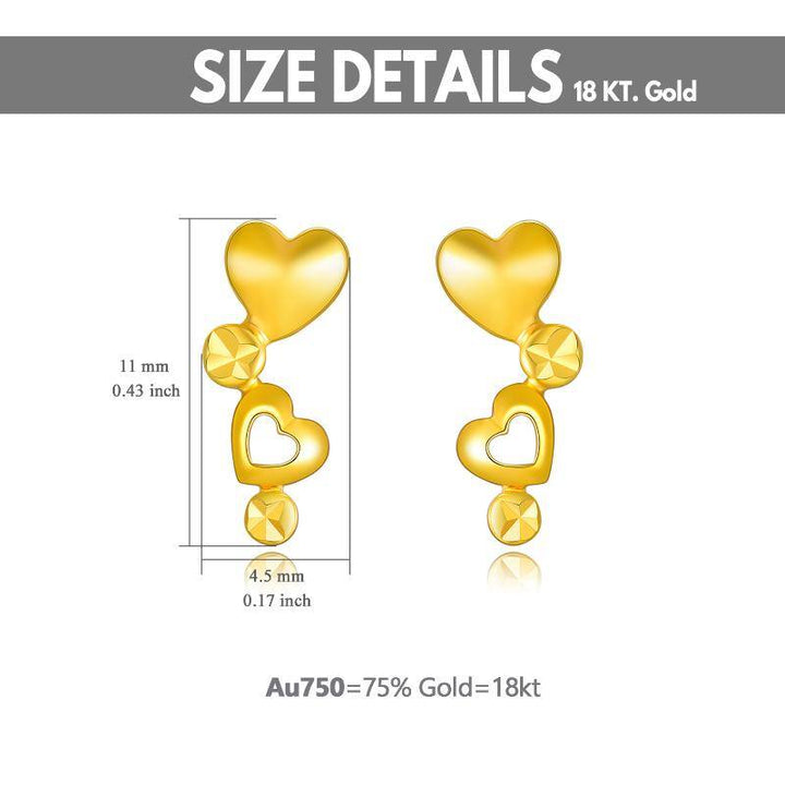 18K Yellow Gold Heart With Heart Stud Earrings For Women