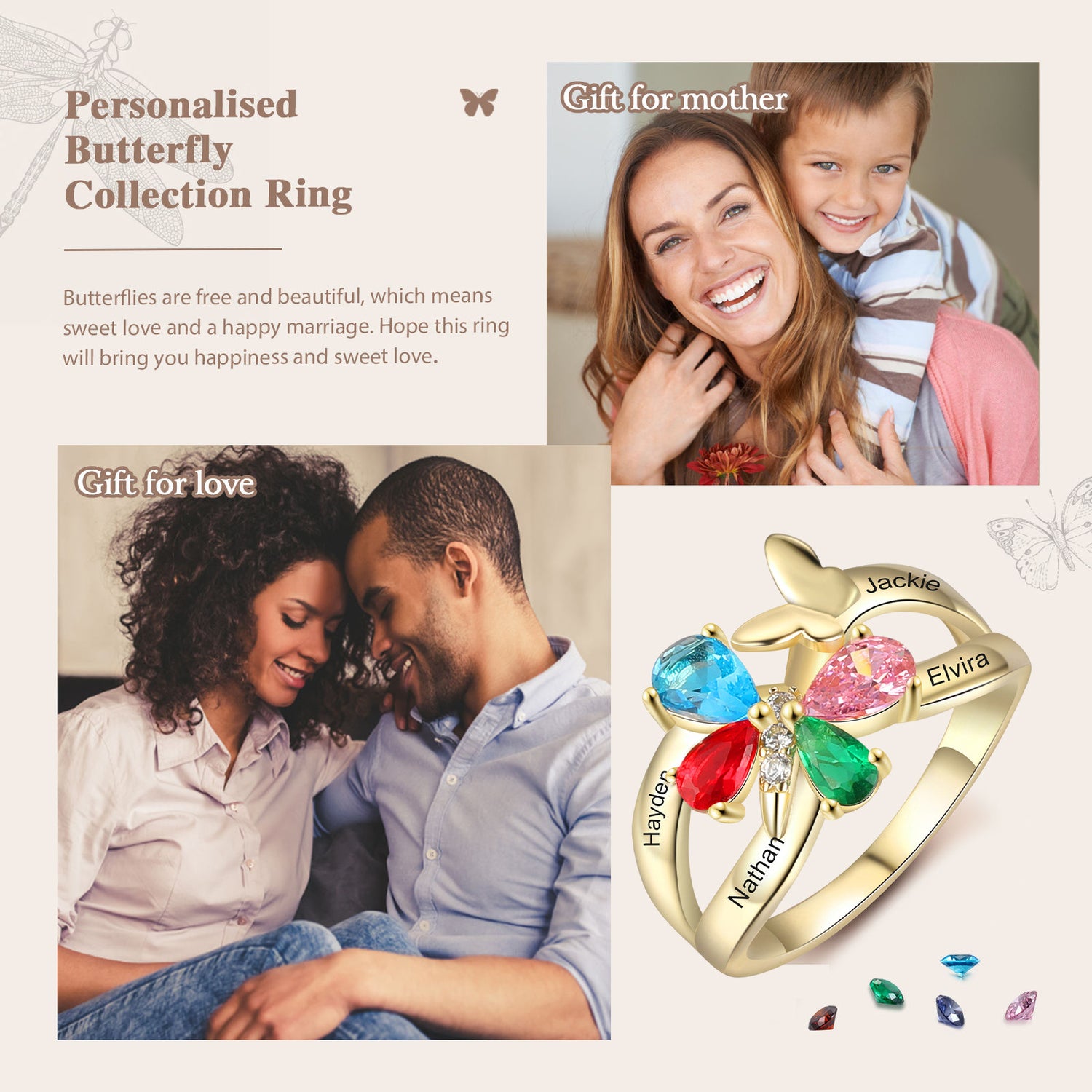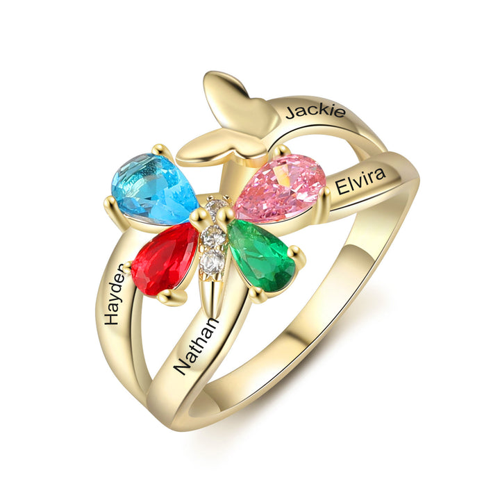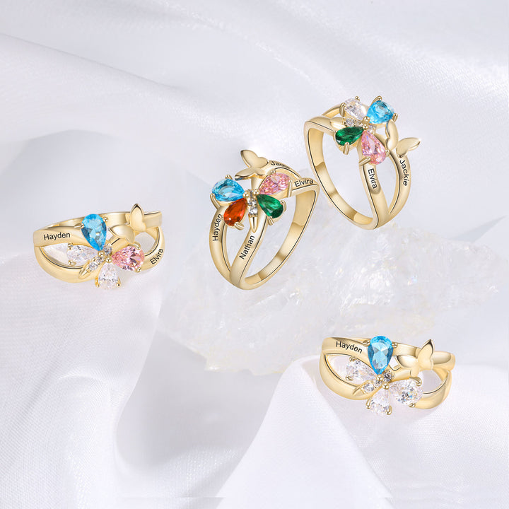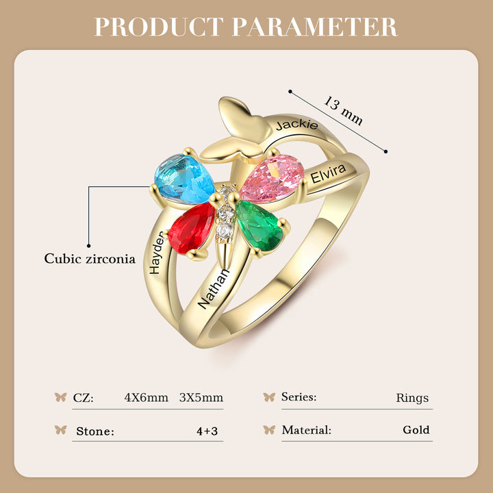 10K Gold Butterfly Cubic Zirconia Personalized Engraving & Birthstone Ring