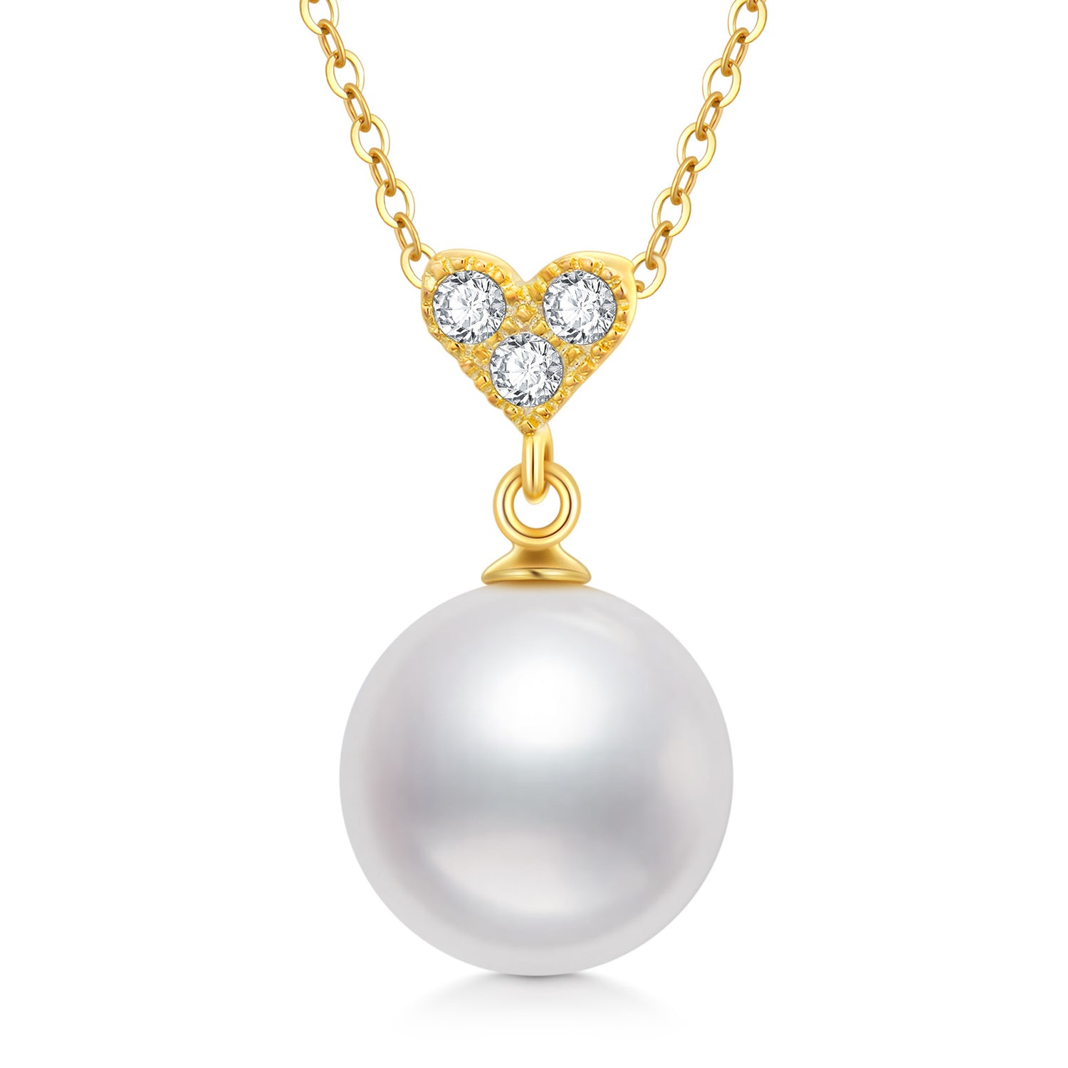 14K Gold Moissanite & Pearl Heart Pendant Necklace