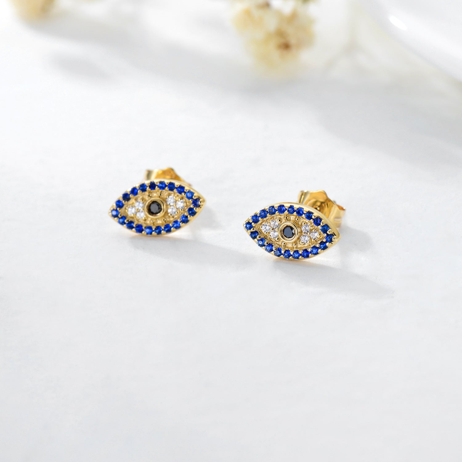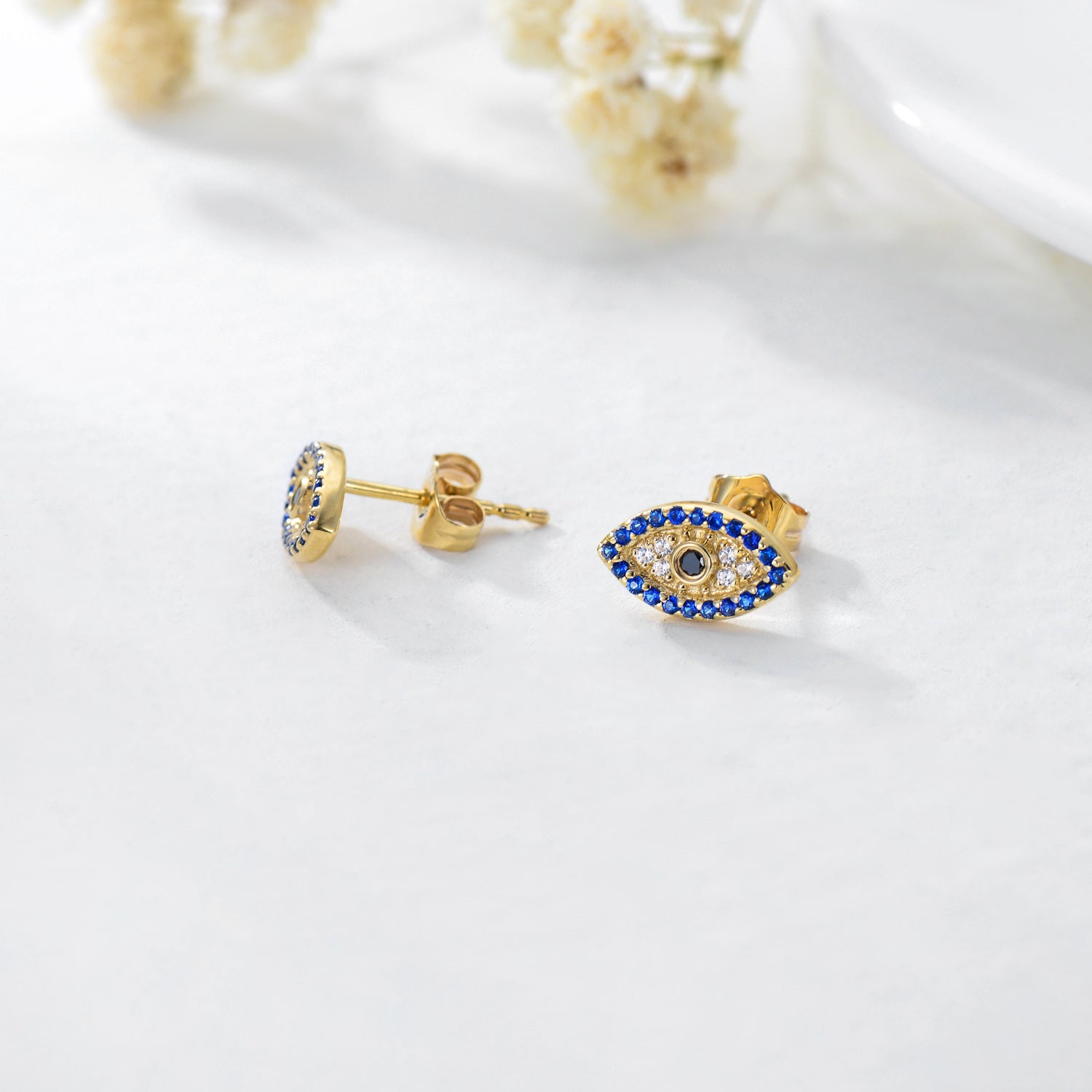 9K Gold Cubic Zirconia Evil Eye Stud Earrings