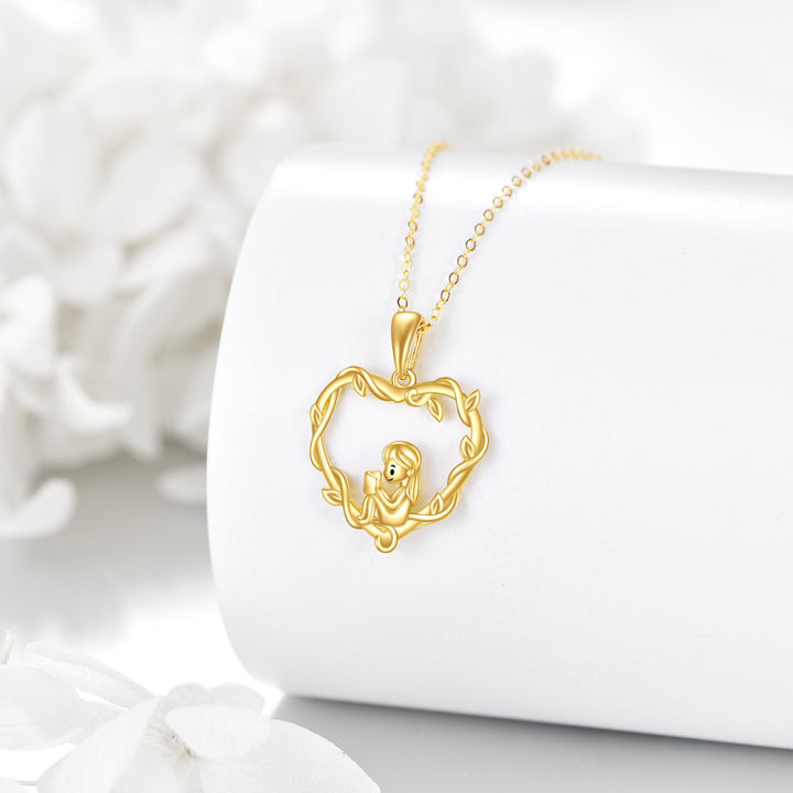 This 14K Gold Heart and Reading Girl Pendant Necklace by YFN captures the quiet beauty of storytelling through an elegant, stone-free design that highlights a delicate heart intertwined with a girl immersed in a book. Symbolizing imagination, love, and personal expression, this pendant is perfect for women who treasure creativity and meaningful connections. Its minimalist gold silhouette offers timeless sophistication, making it suitable for both everyday wear and special occasions. Thoughtful and expressive, this necklace adds a poetic touch to any jewelry collection, celebrating the joy found in reading and heartfelt moments.