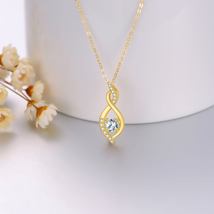 This Women's Pendant Necklace is Crafted from Luxurious 14K Gold, Featuring a Stunning Round Crystal and an Infinite Symbol.