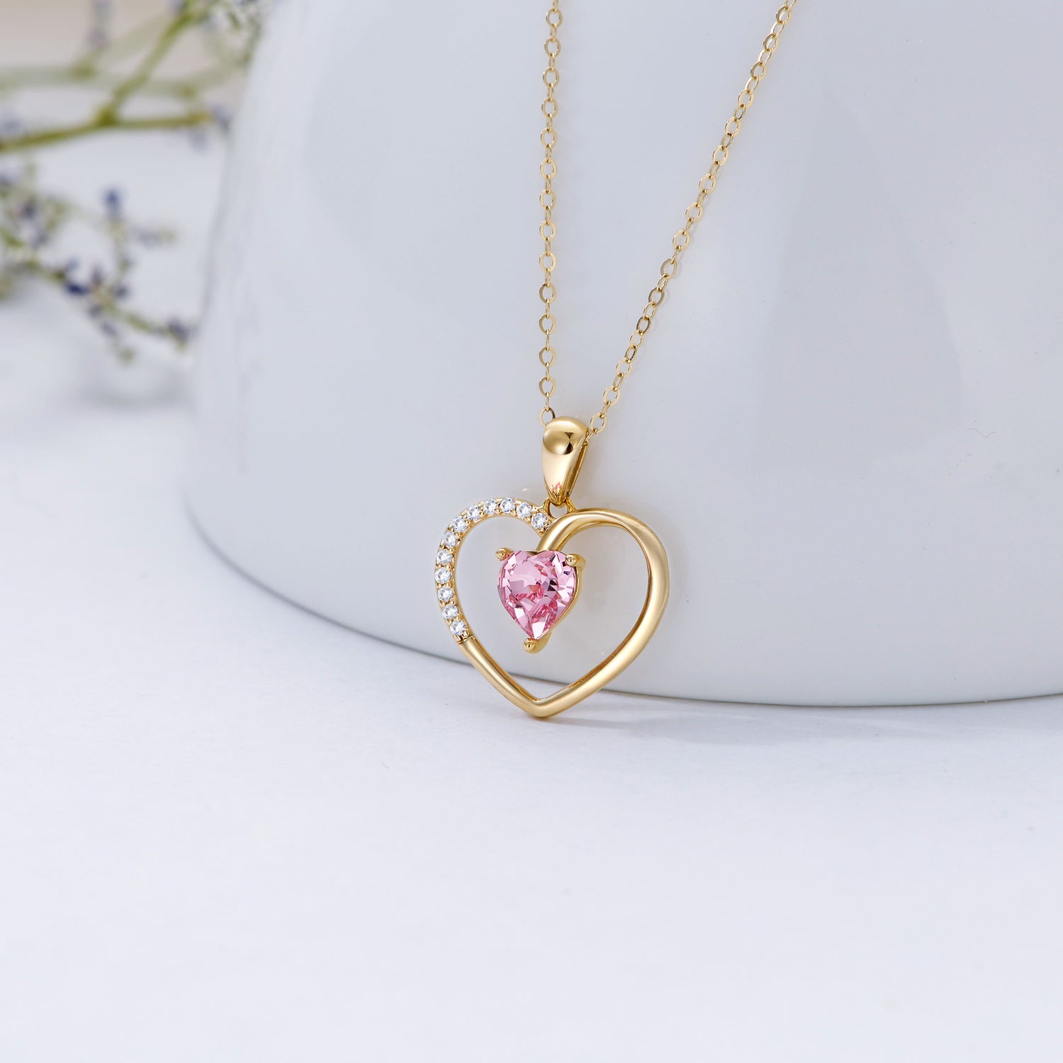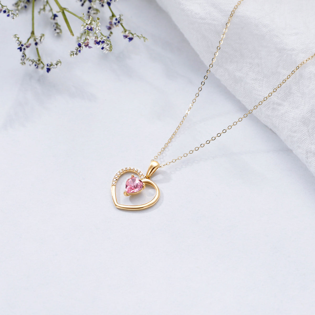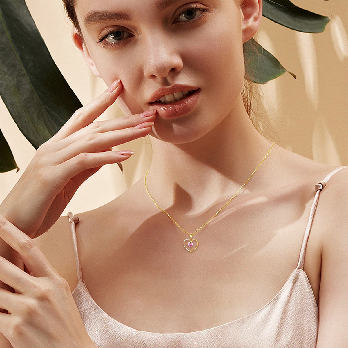 This Heart-Shaped Pendant Necklace is crafted from Genuine 14K Gold, Featuring a Radiant Pink Crystal.