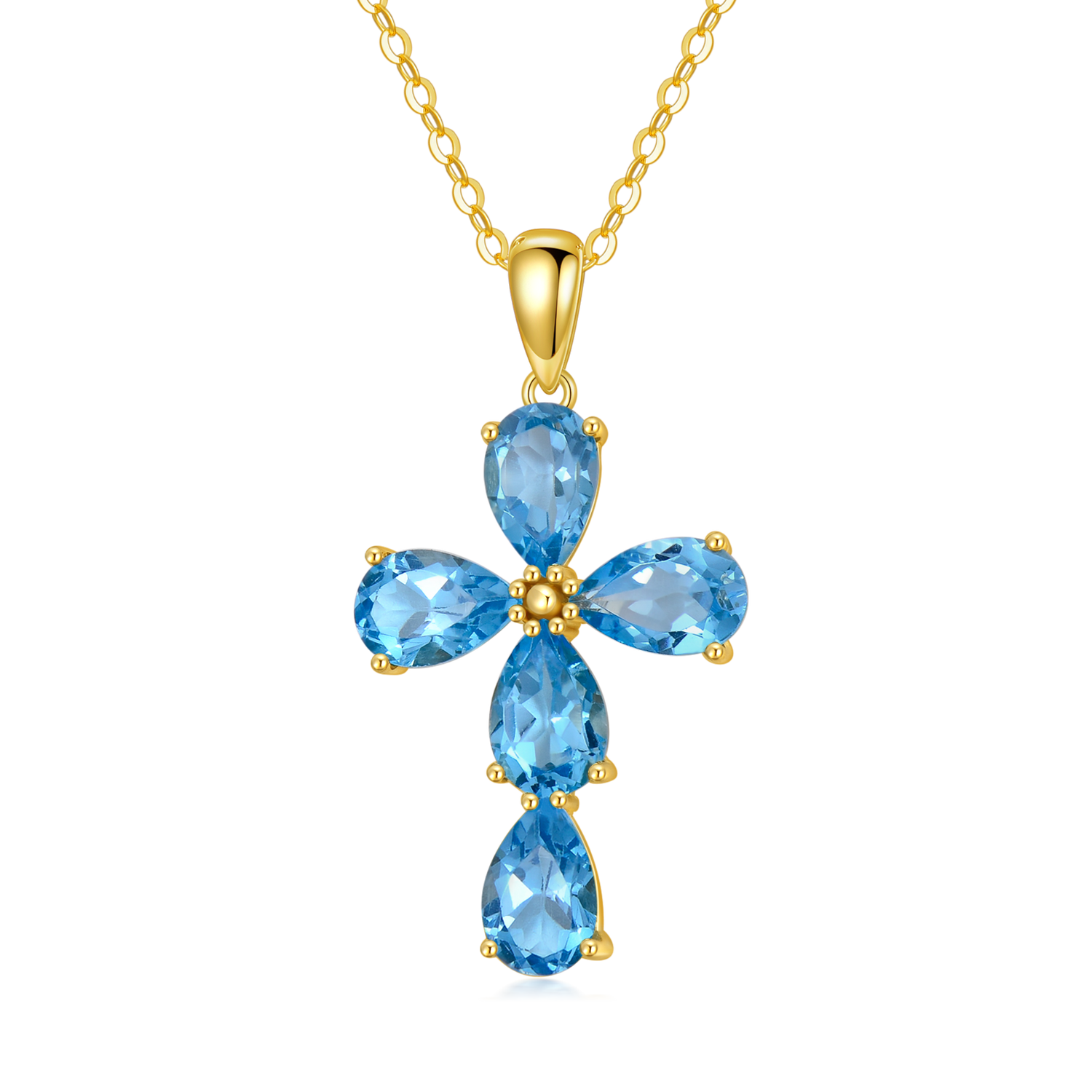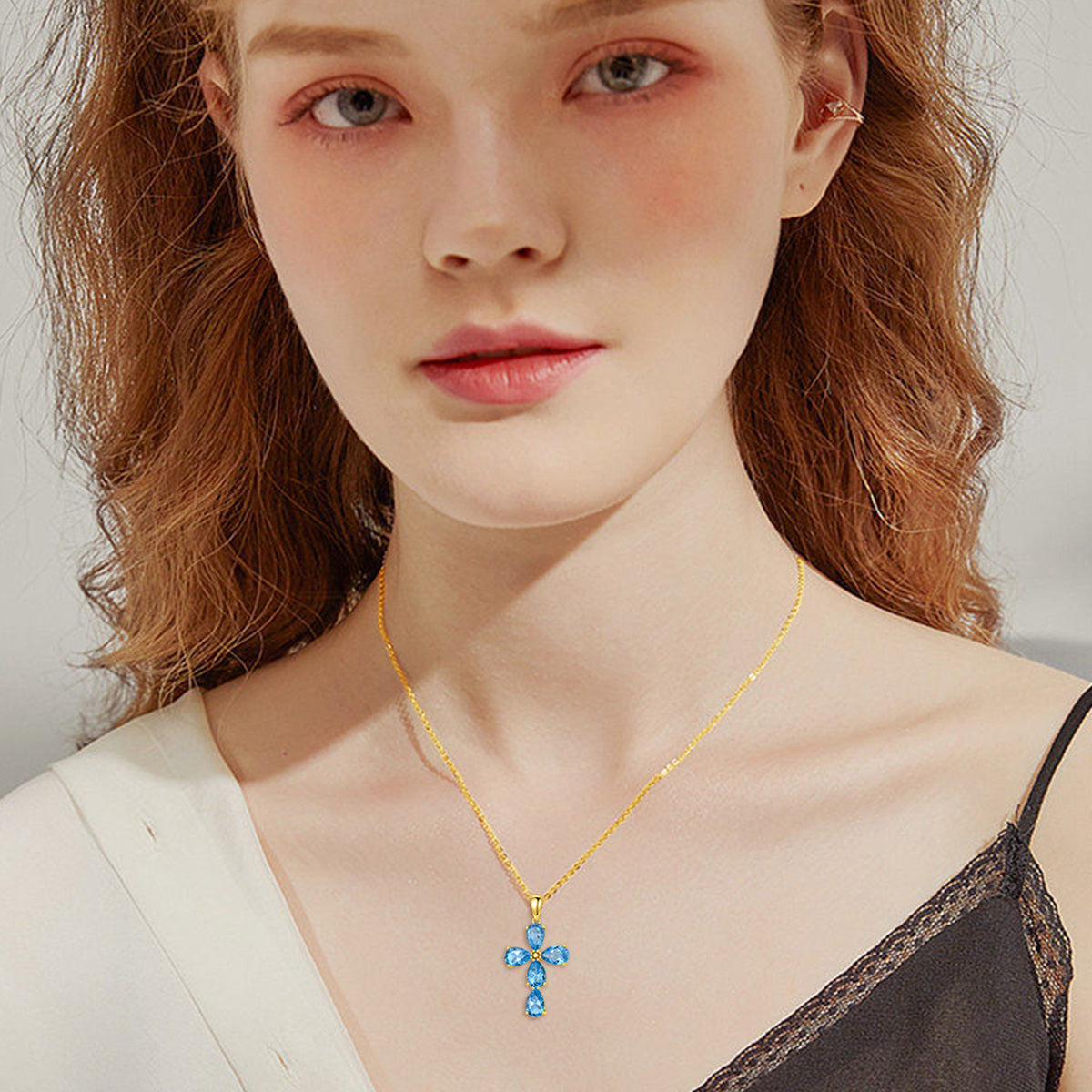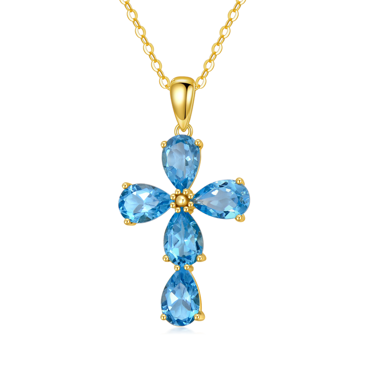 This 14K Gold Pear Shaped Topaz Cross Pendant Necklace by YFN beautifully merges spiritual symbolism with gemstone brilliance. The pear-shaped topaz adds striking color and depth to the cross silhouette, creating a meaningful and elegant accessory for modern women.