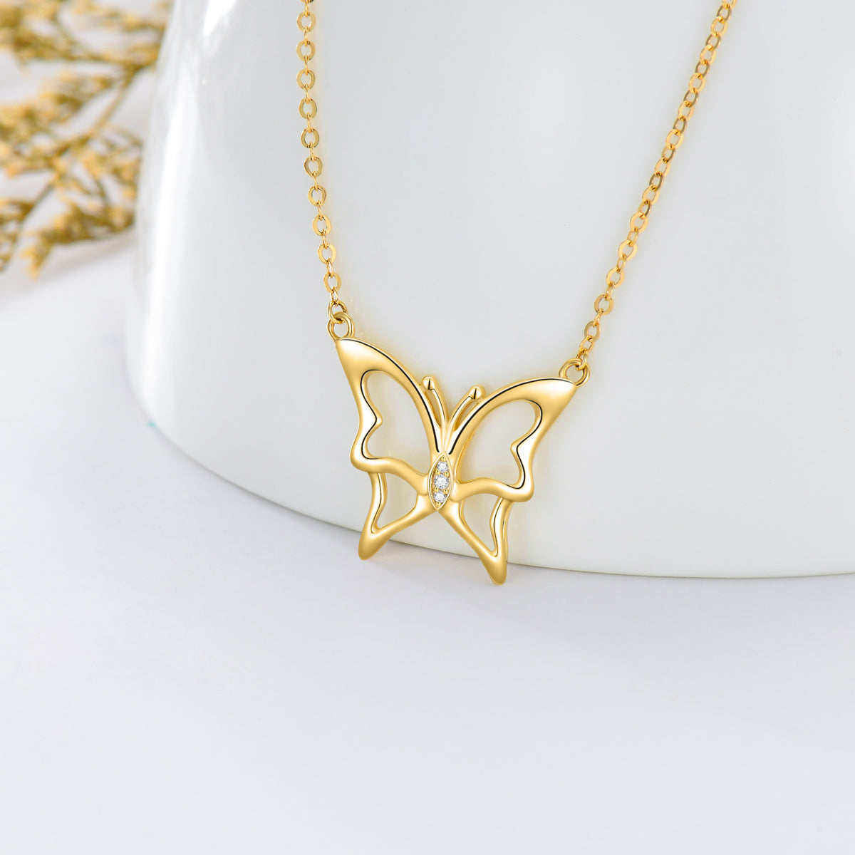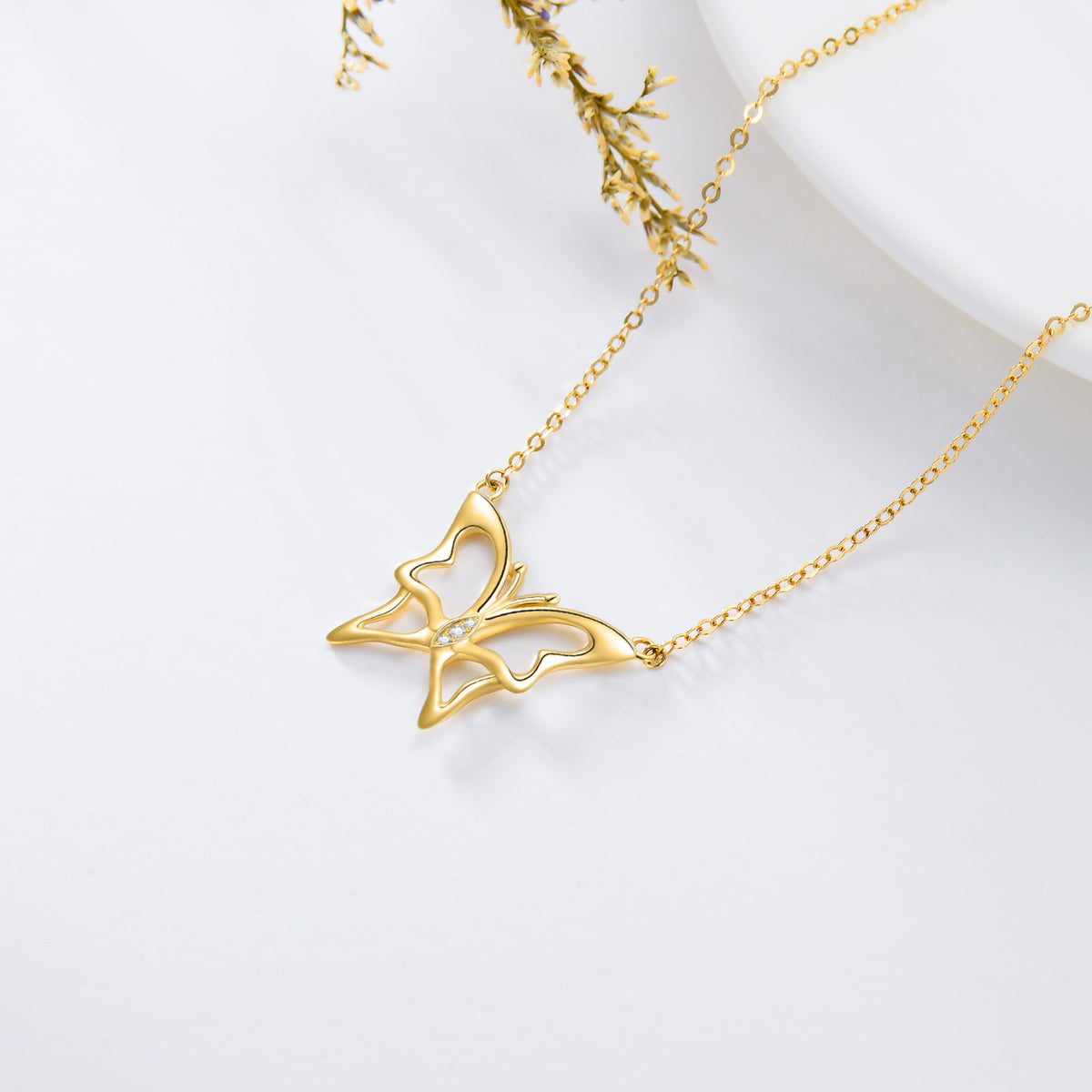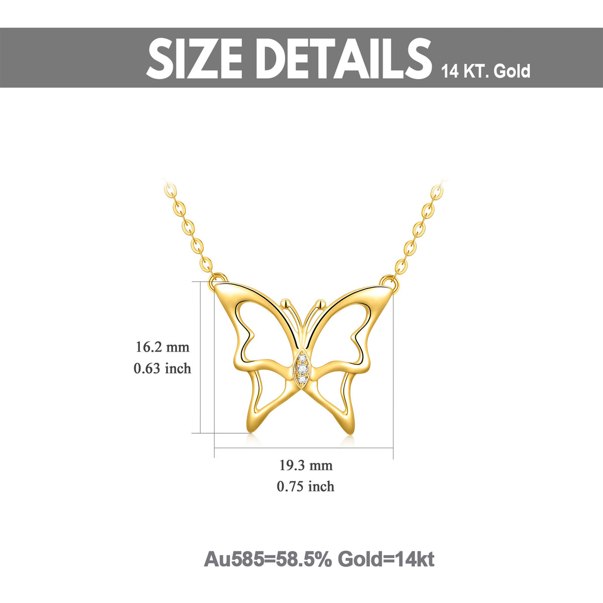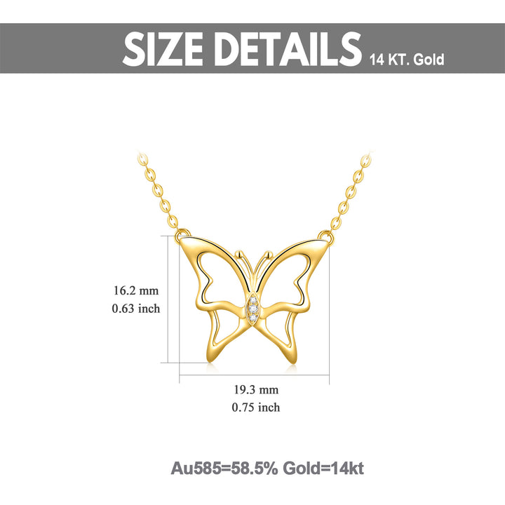 Crafted from genuine 14K Gold, this Pendant Necklace features a Butterfly Motif adorned with glistening Zircon Stones.