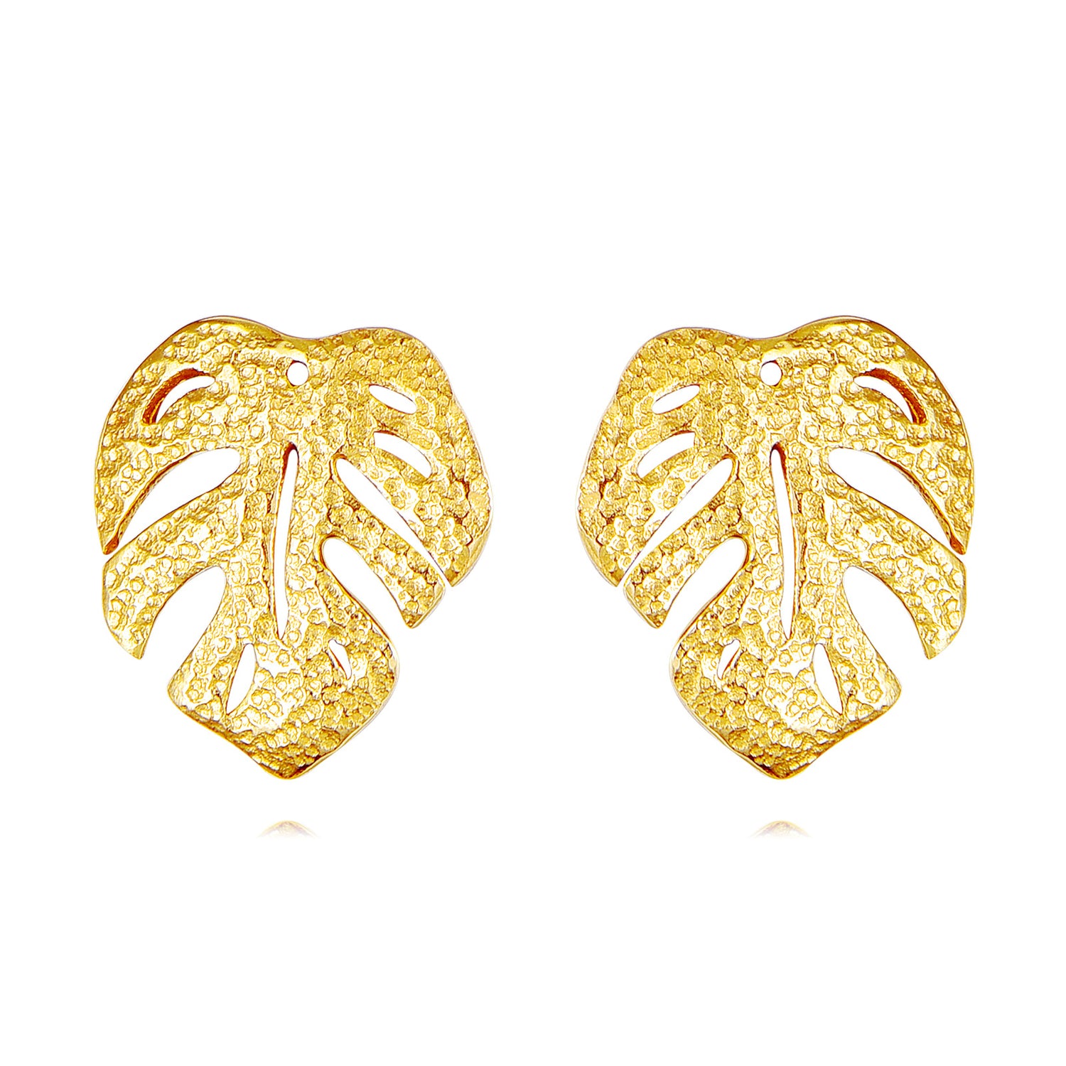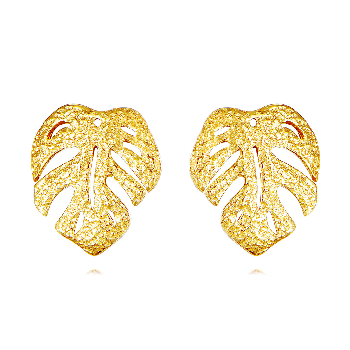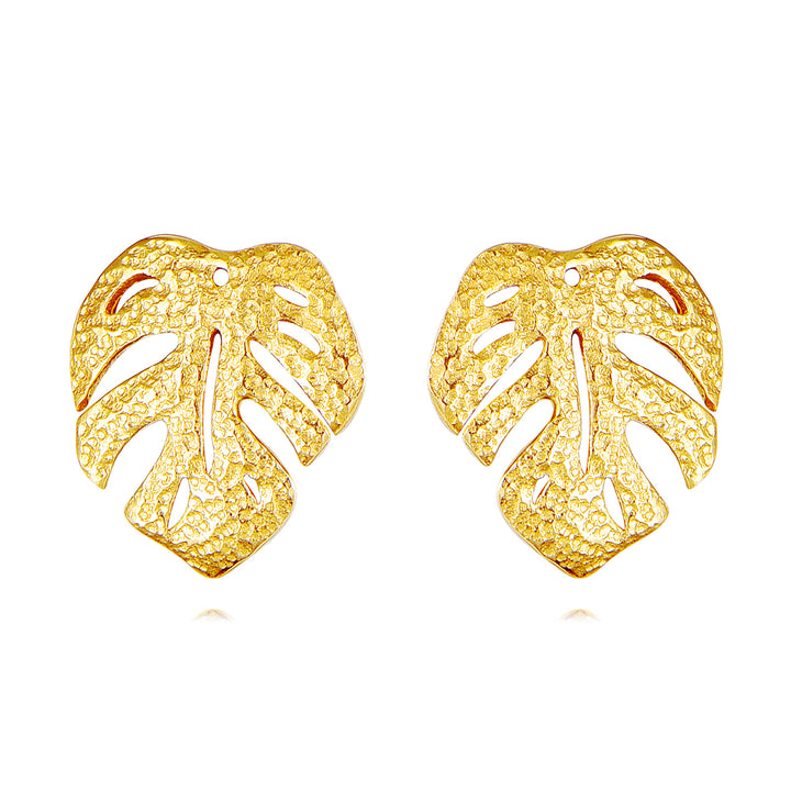 Crafted from high-quality 14K Gold, these minimalist, stone-free stud earrings feature a meticulously crafted Leaves motif.