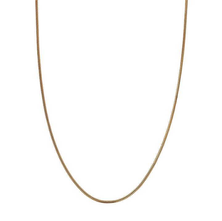 This Snake Chain Necklace by YFN is the ideal choice for a man seeking a confident, everyday style, defined by its sleek and seamless design. The chain, finished with a luminous yellow gold plating over sterling silver, ensures effortless movement and a refined aesthetic. Its undeniable presence makes a striking statement on its own while also providing a perfect foundation for layering. This piece elegantly wraps around the neckline, adding a sophisticated, modern touch to any overall look.