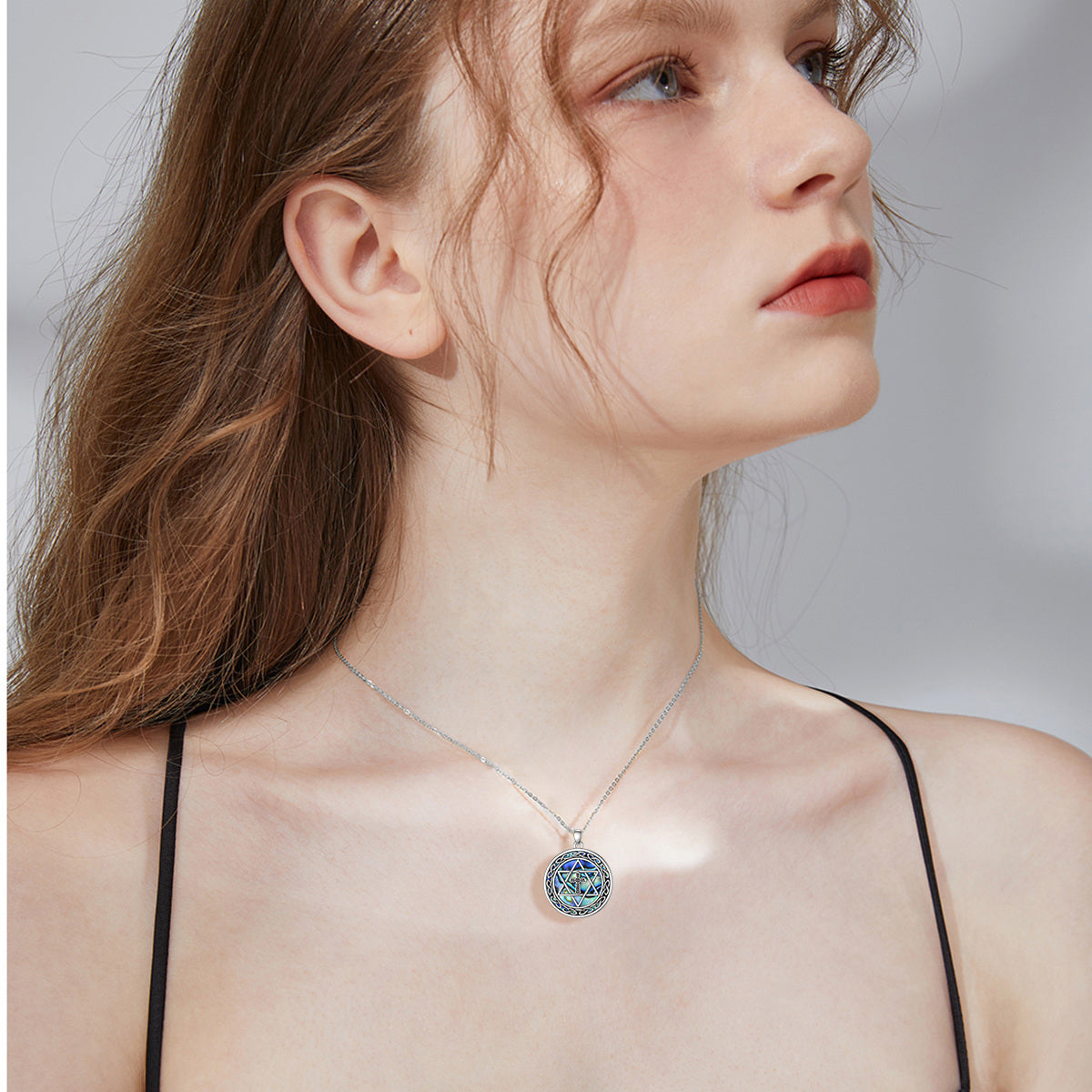 Crafted from Sterling Silver with a Retro Silver finish, this circular Pendant Necklace features Abalone Shellfish inlays and is available in Cross or Star of David designs.