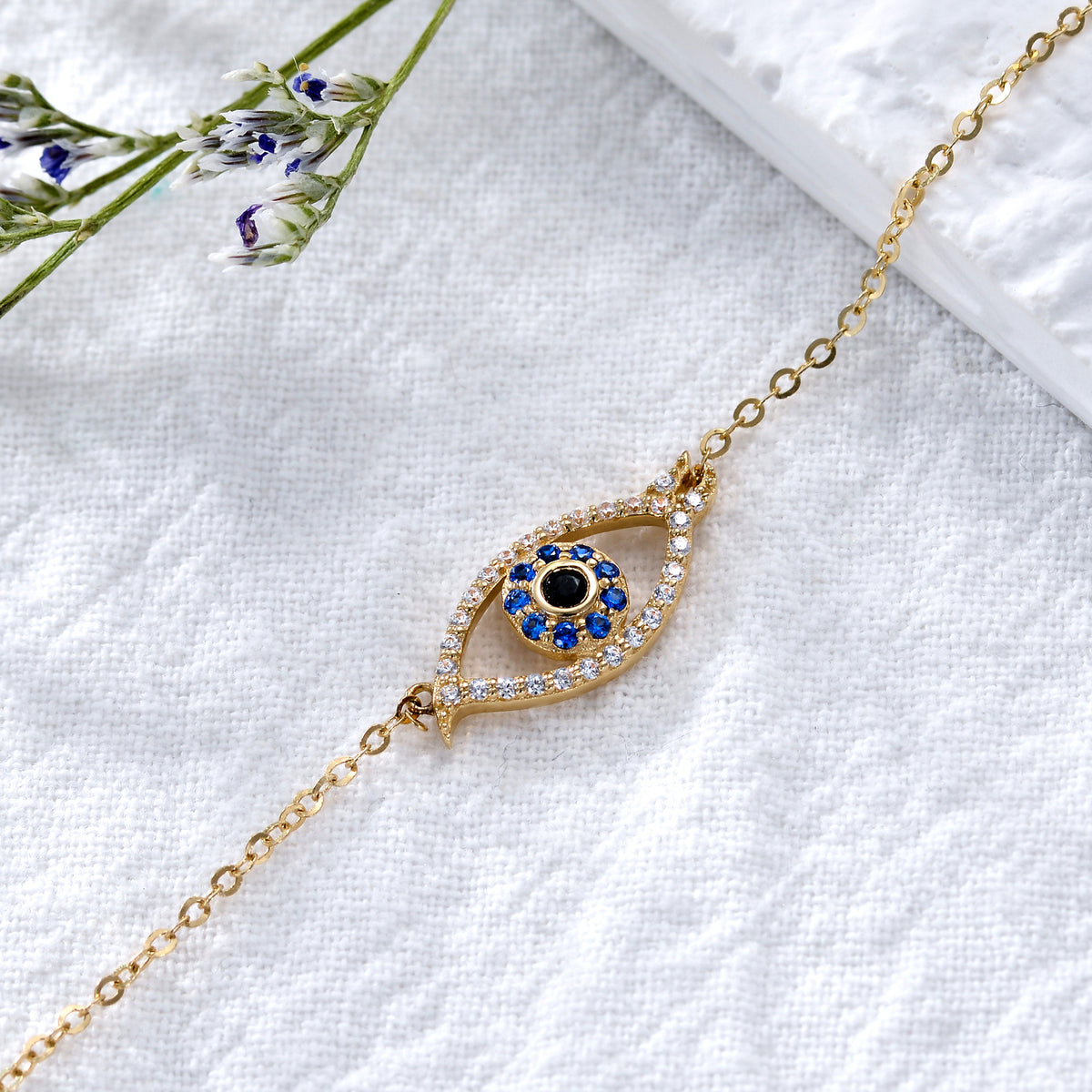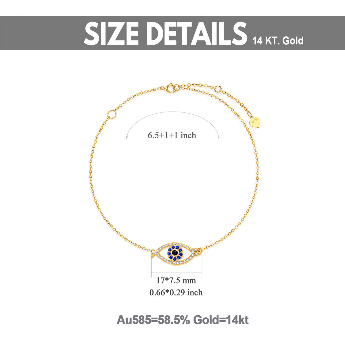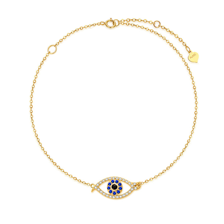 14K Gold Cubic Zirconia Evil Eye Charm Bracelet