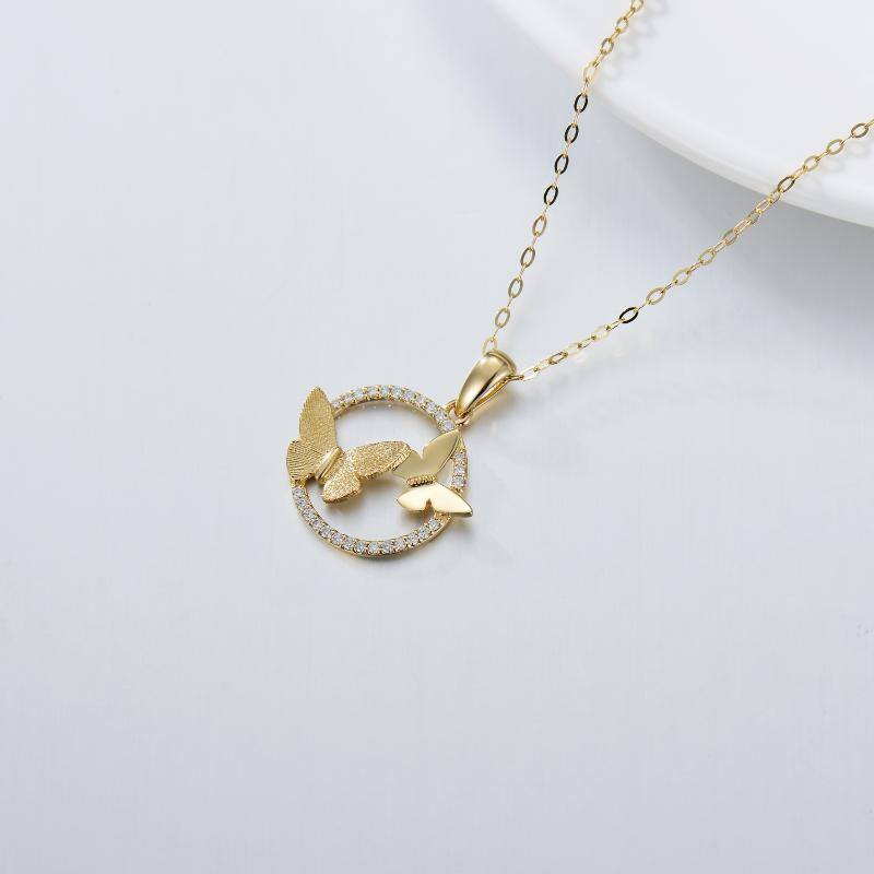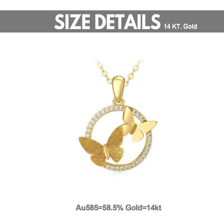 14K Gold Moissanite Couple Butterfly Pendant Necklace