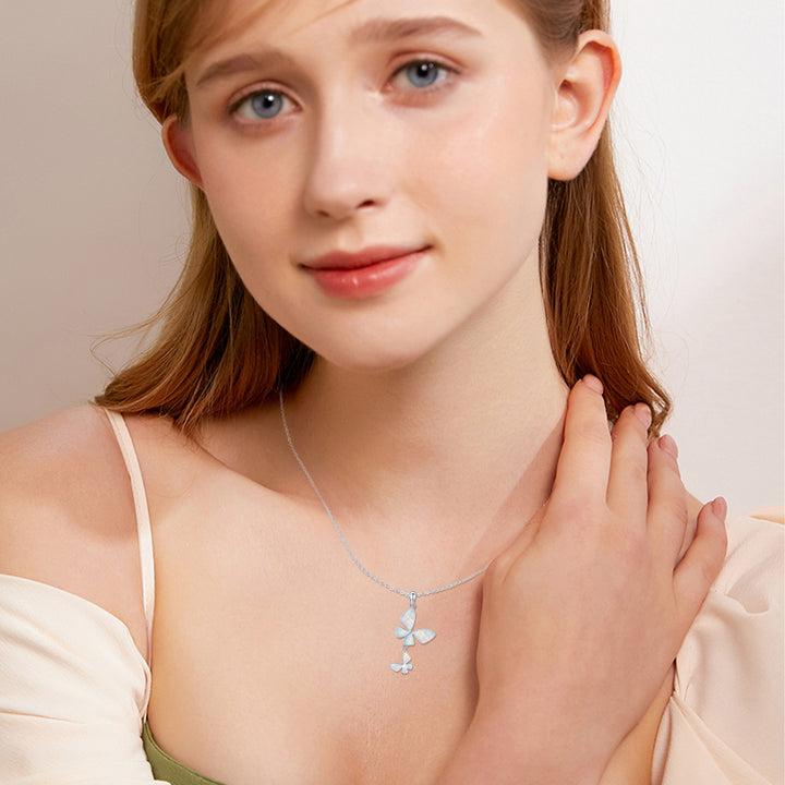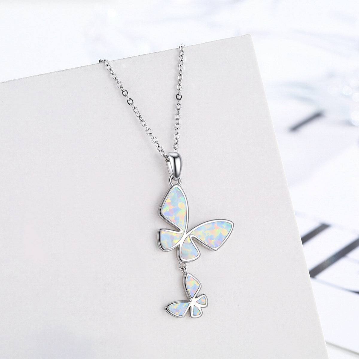 This Sterling Silver Opal Butterfly Pendant Necklace by YFN exudes elegance and sophistication for women. This exquisite Pendant Necklace is crafted from high-quality sterling silver, plated in luxurious White Gold, and features a delicate Butterfly Design with an enchanting Opal centerpiece, symbolizing transformation and grace.