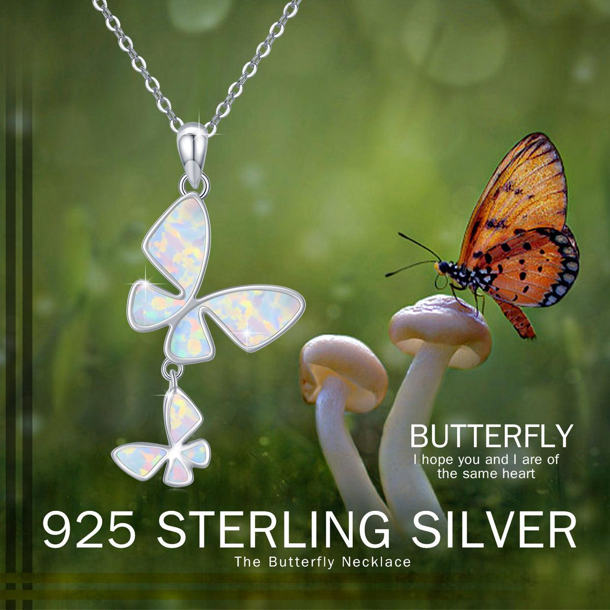 Crafted from Sterling Silver with White Gold Plating, this Pendant Necklace features a delicate Butterfly Design and an enchanting Opal centerpiece.