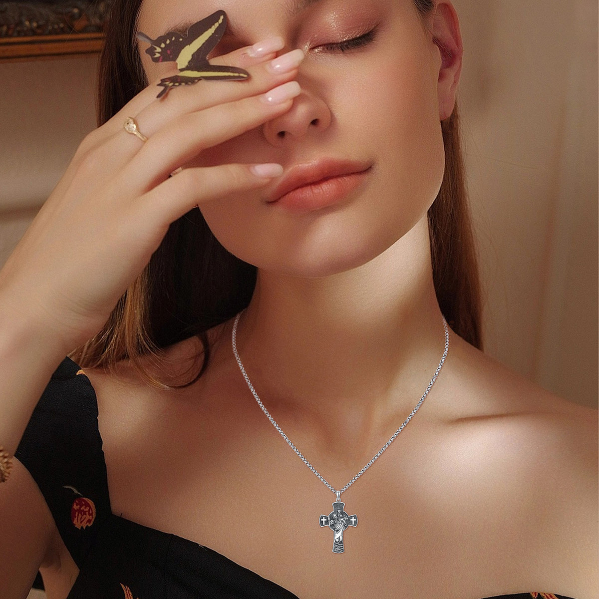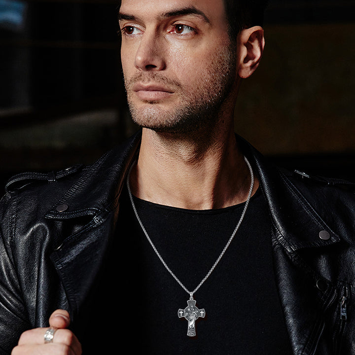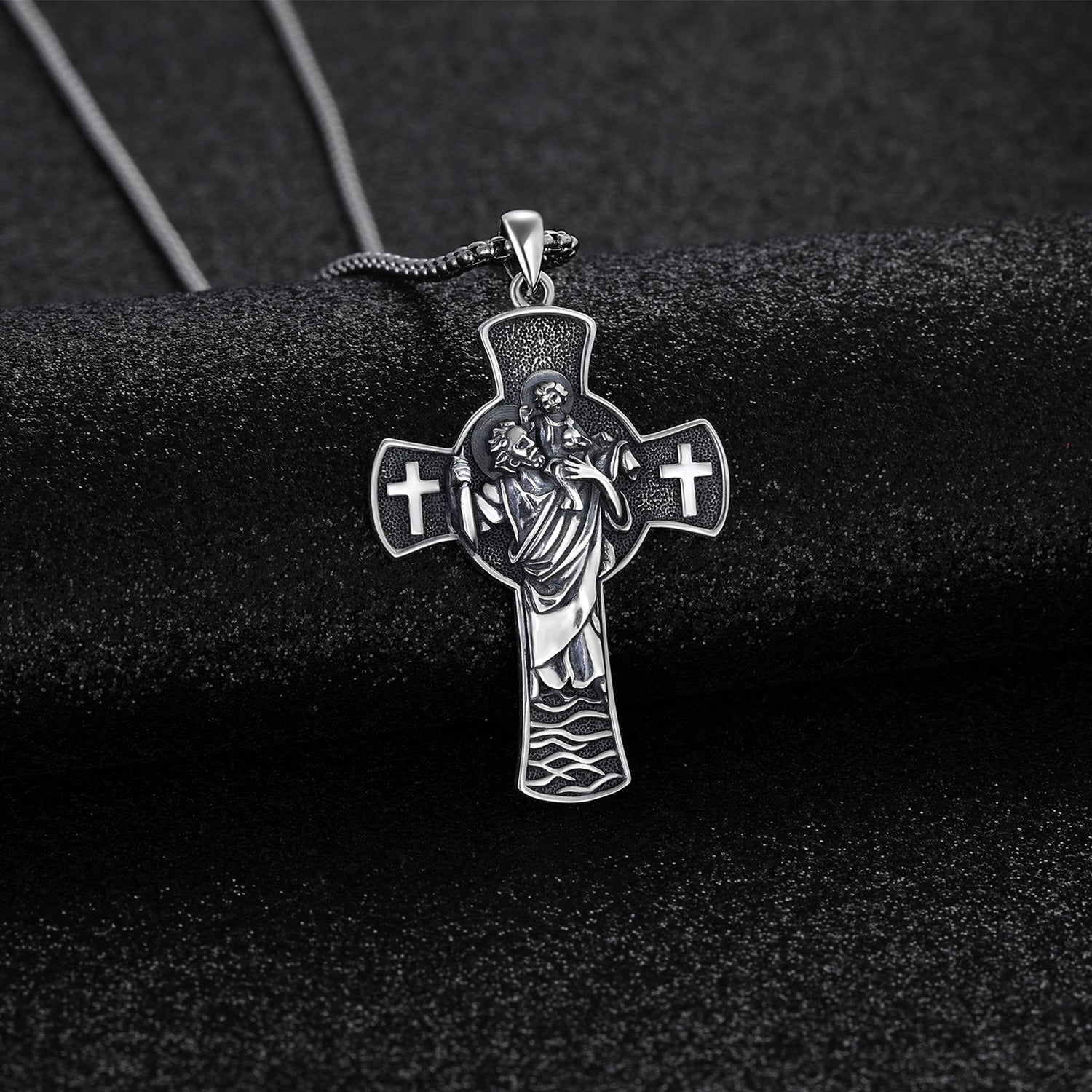 This Sterling Silver Cross and Saint Christopher Pendant Necklace with Engraved Word by YFN combines spiritual symbolism with retro silver appeal. The detailed cross is paired with a Saint Christopher motif and engraved blessing, creating a meaningful unisex piece. Its clean, stone-free design emphasizes timeless craftsmanship and devotional significance.