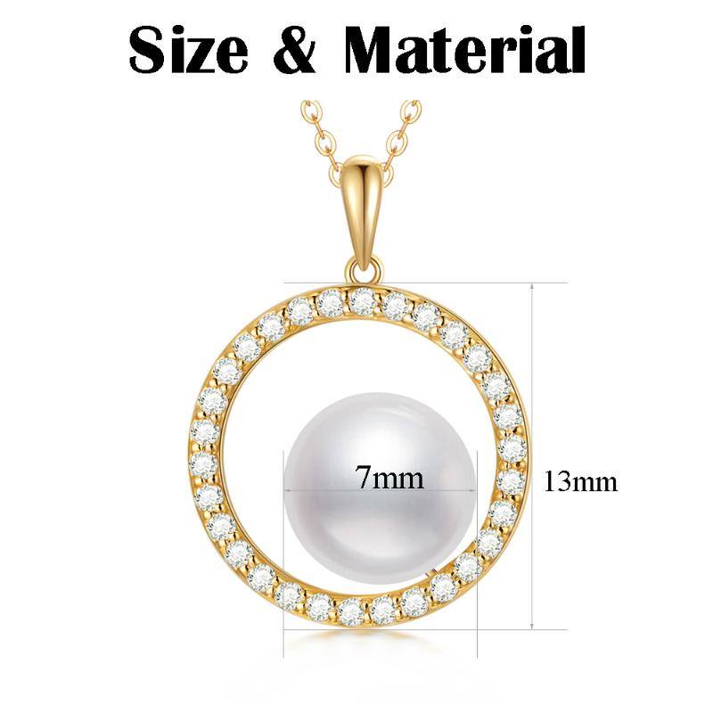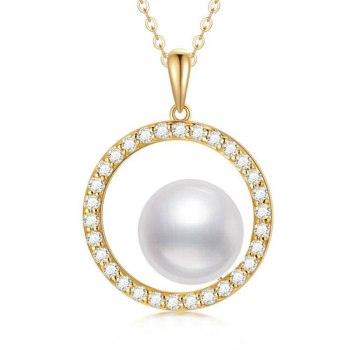 9K Gold Moissanite & Pearl Circle Pendant Necklace