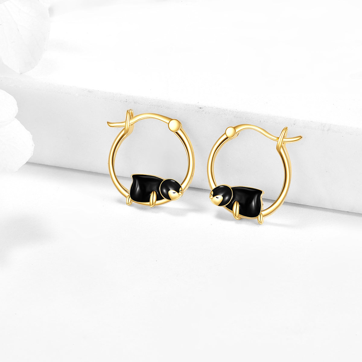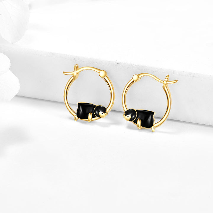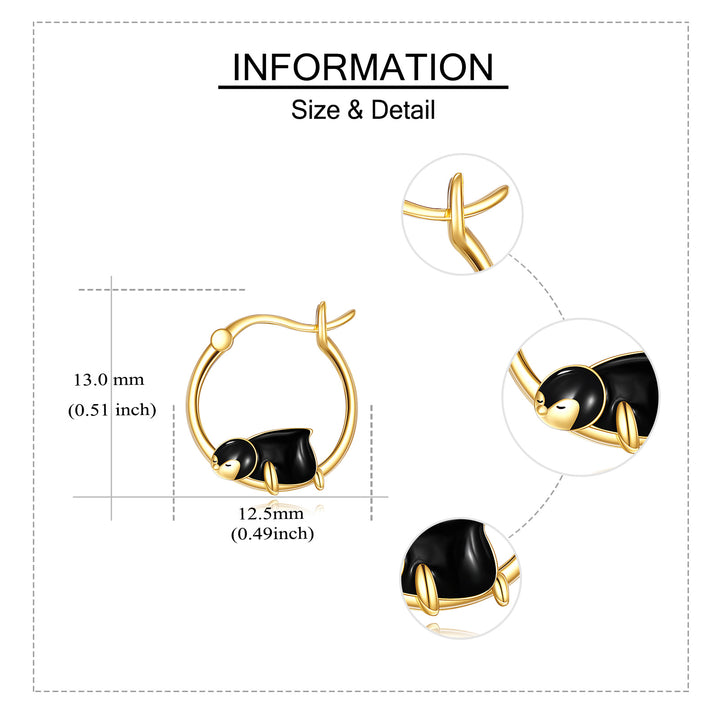 These no-stone Hoop Earrings are Crafted from High-Quality 14K Gold, featuring an Adorable Penguin Motif.