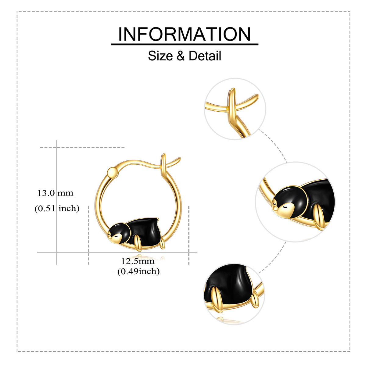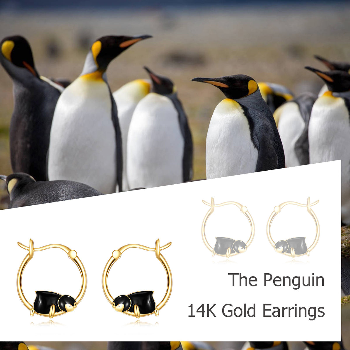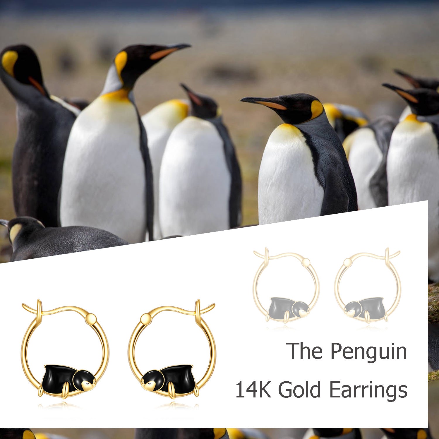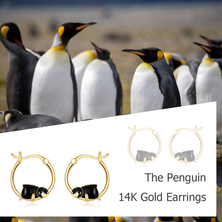 These 14K Gold Penguin Hoop Earrings by YFN are no-stone, whimsical, and luxurious hoop earrings for women. Crafted entirely from high-quality 14K gold, these elegant hoops feature an adorable penguin motif. Their no-stone design highlights the intricate motif, providing a unique twist to traditional gold jewelry for any occasion.