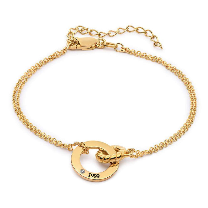 9K Gold Cubic Zirconia Personalized Engraving Charm Bracelet For Women