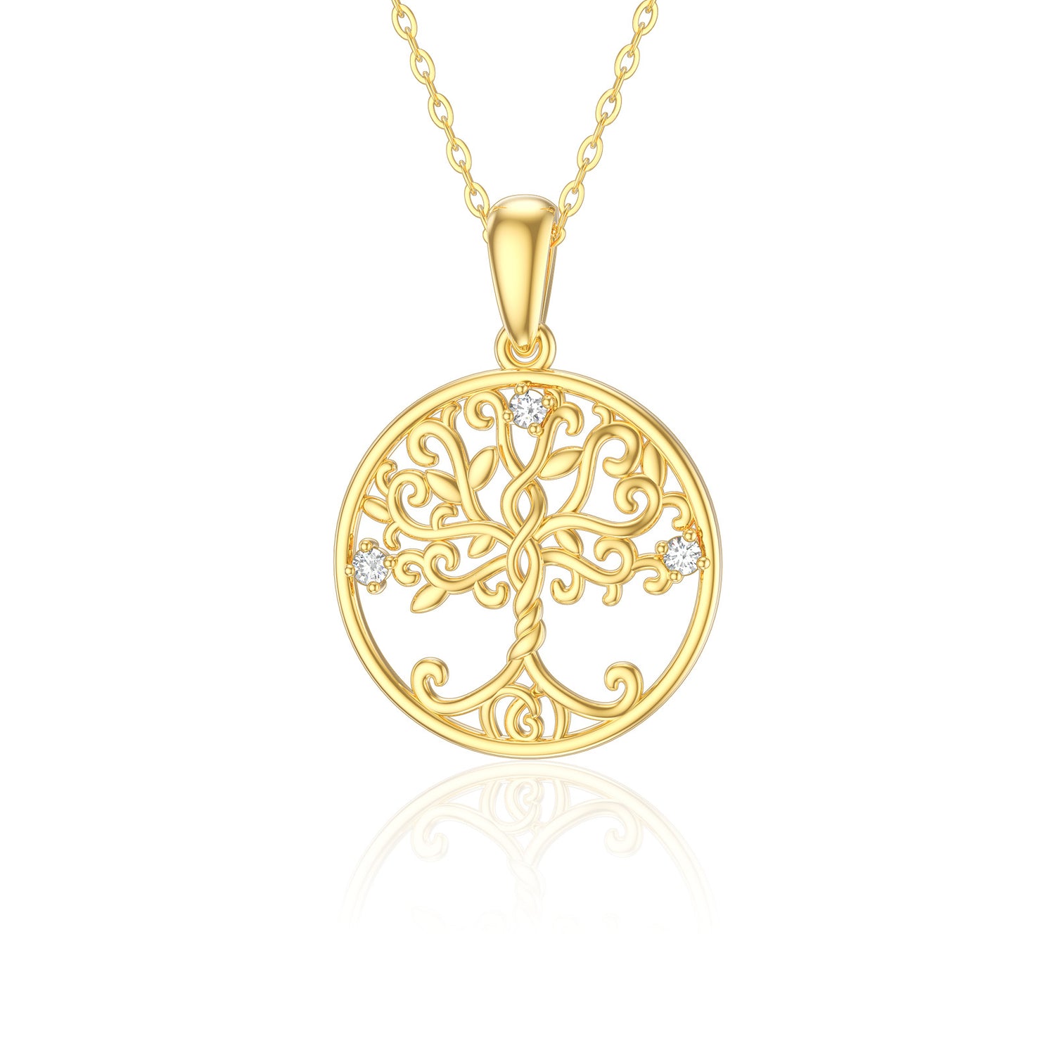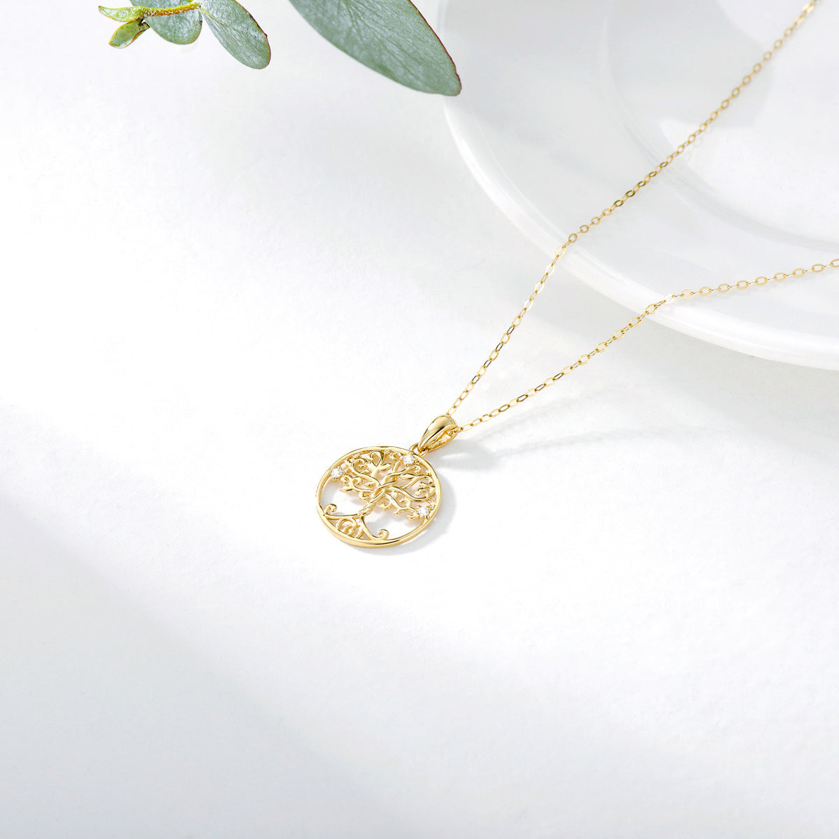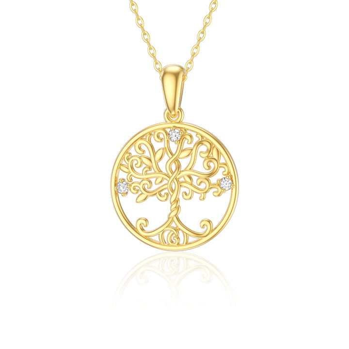 14K Gold Moissanite Tree Of Life Pendant Necklace