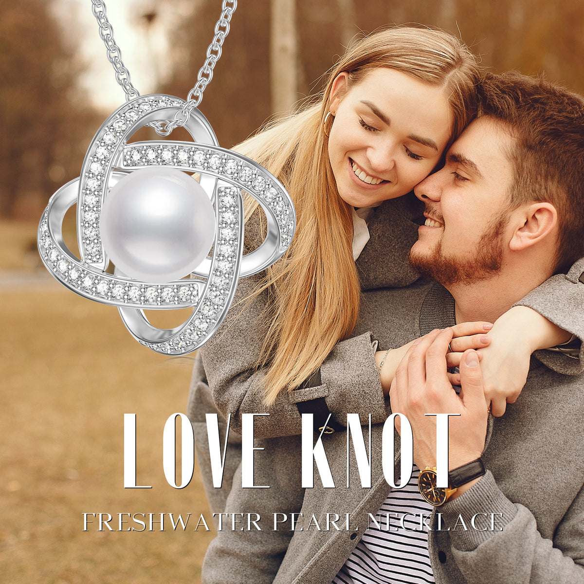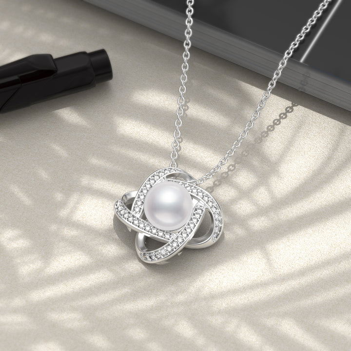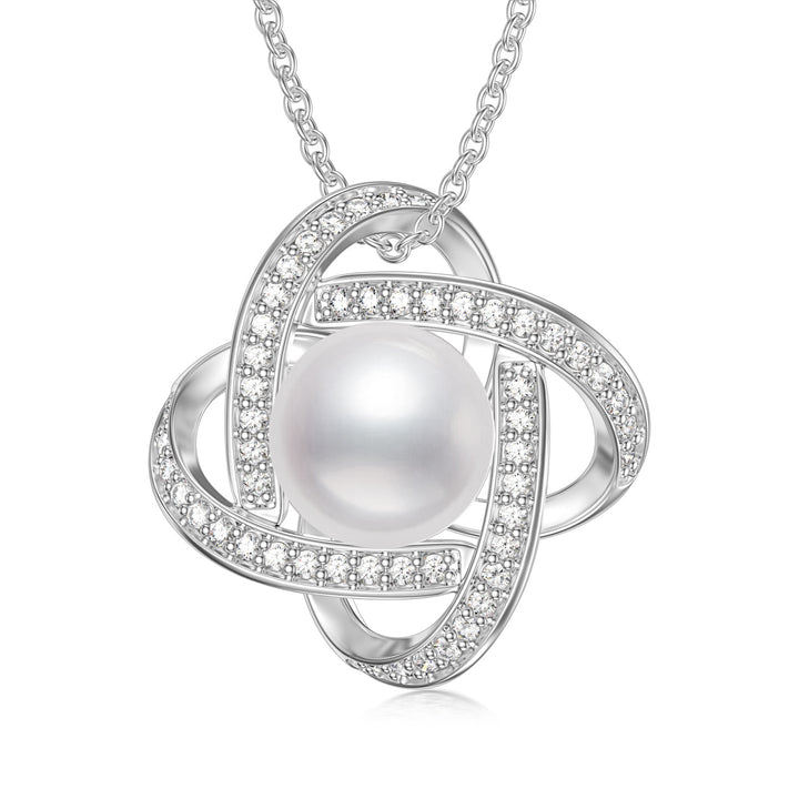 Sterling Silver Pearl Cross Knot Pendant Necklace