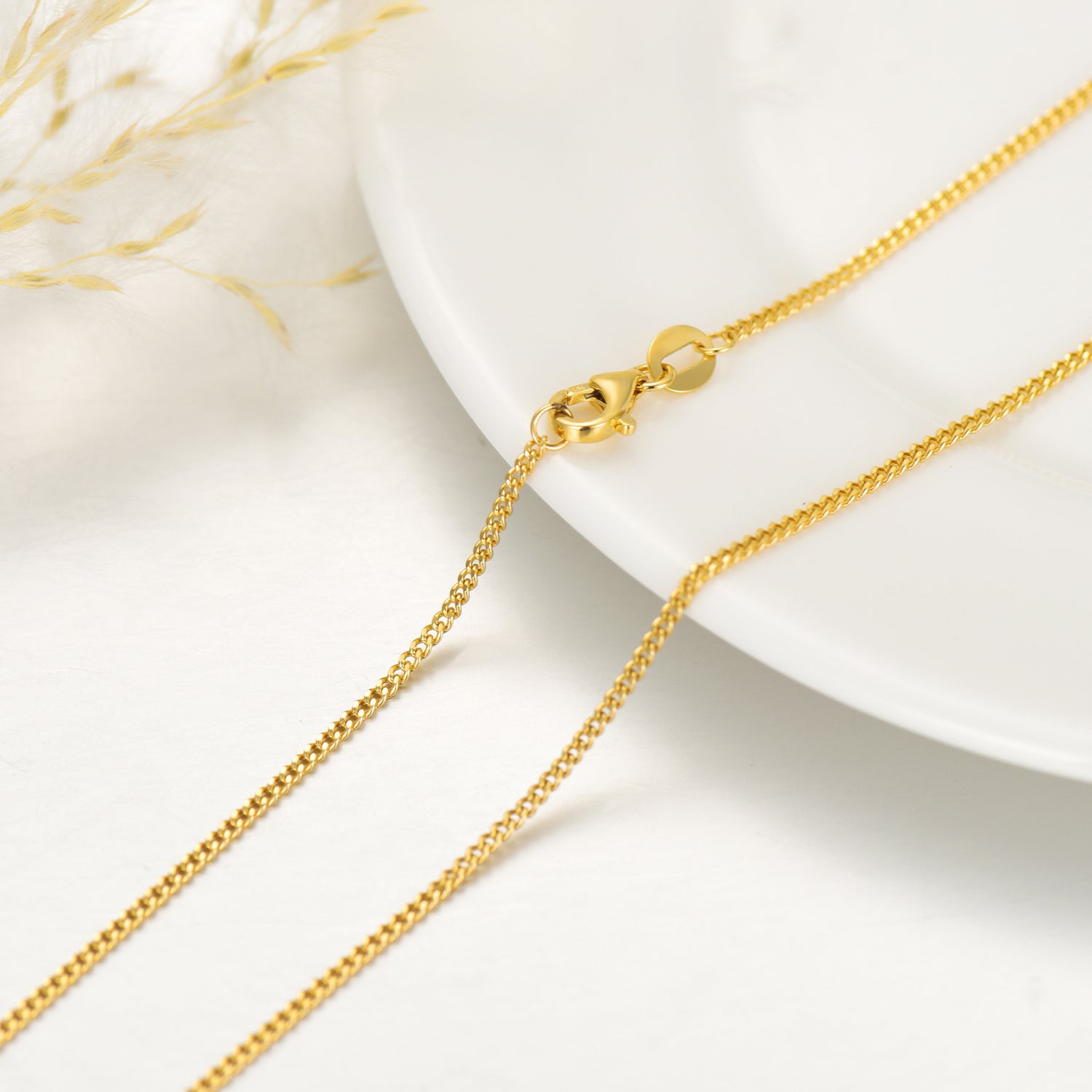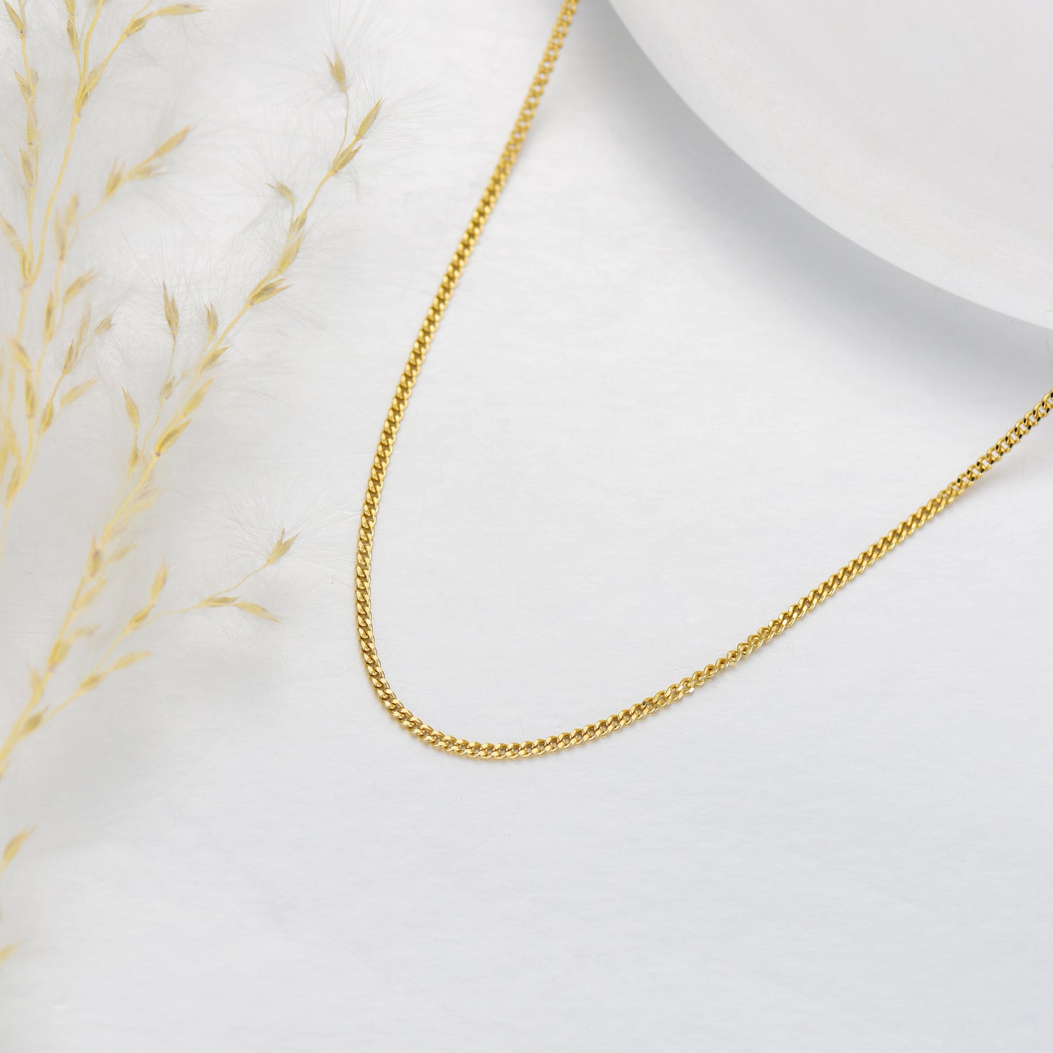 This 14K Gold Curb Link Chain Necklace by YFN embodies minimalist luxury, offering a refined silhouette that suits any wardrobe. Crafted entirely from solid 14K gold, the chain’s slender profile and high polish create a subtle yet striking glow. Free of stones, it celebrates pure materiality and timeless design, making it an essential piece for women who appreciate understated sophistication. Worn alone or layered, this classic curb chain elevates daily style with effortless elegance and enduring craftsmanship.