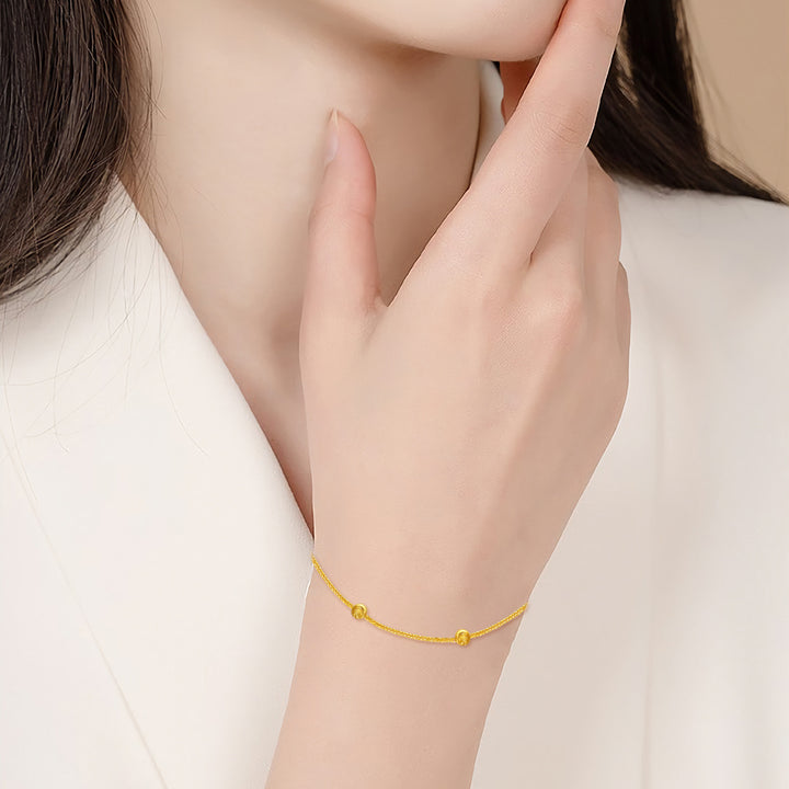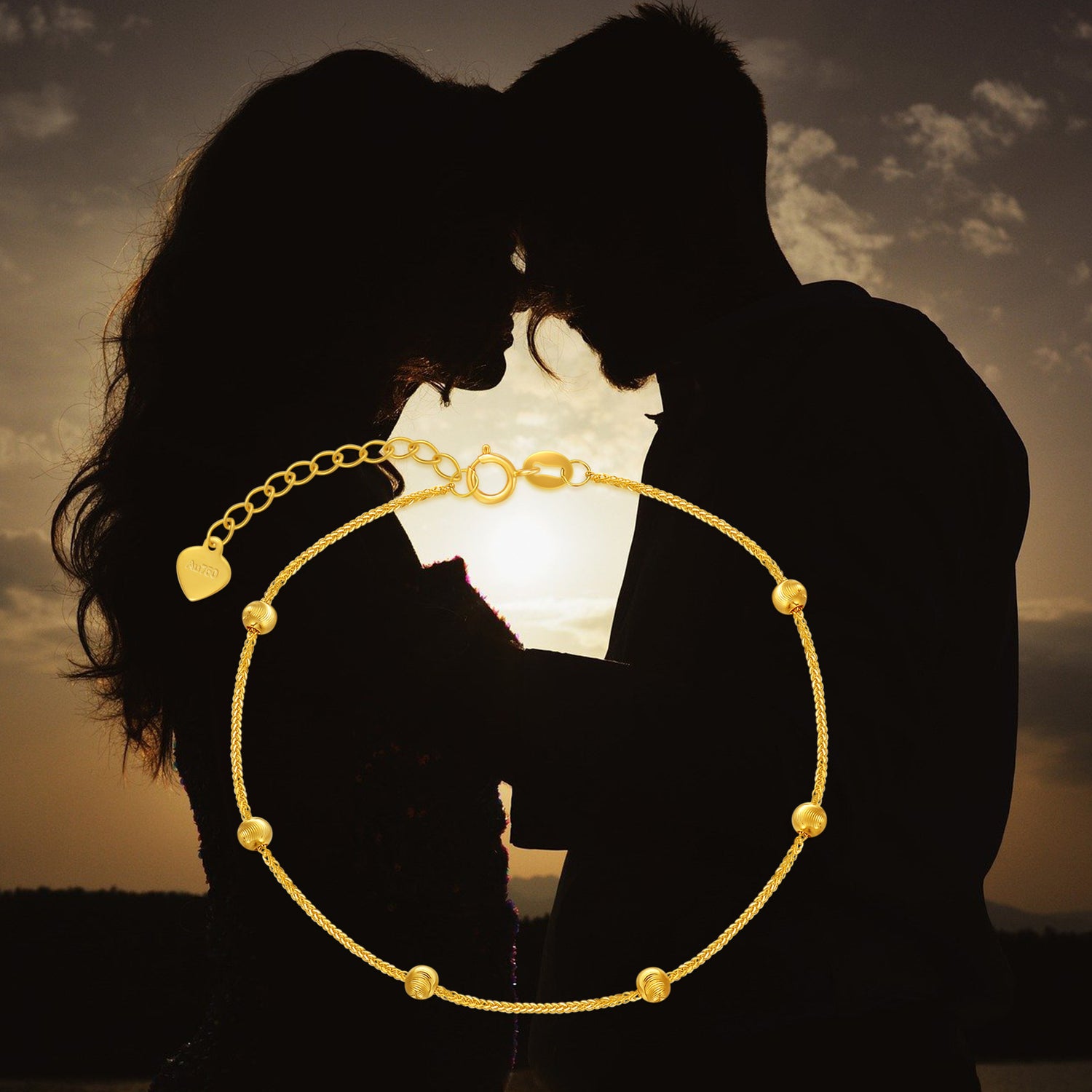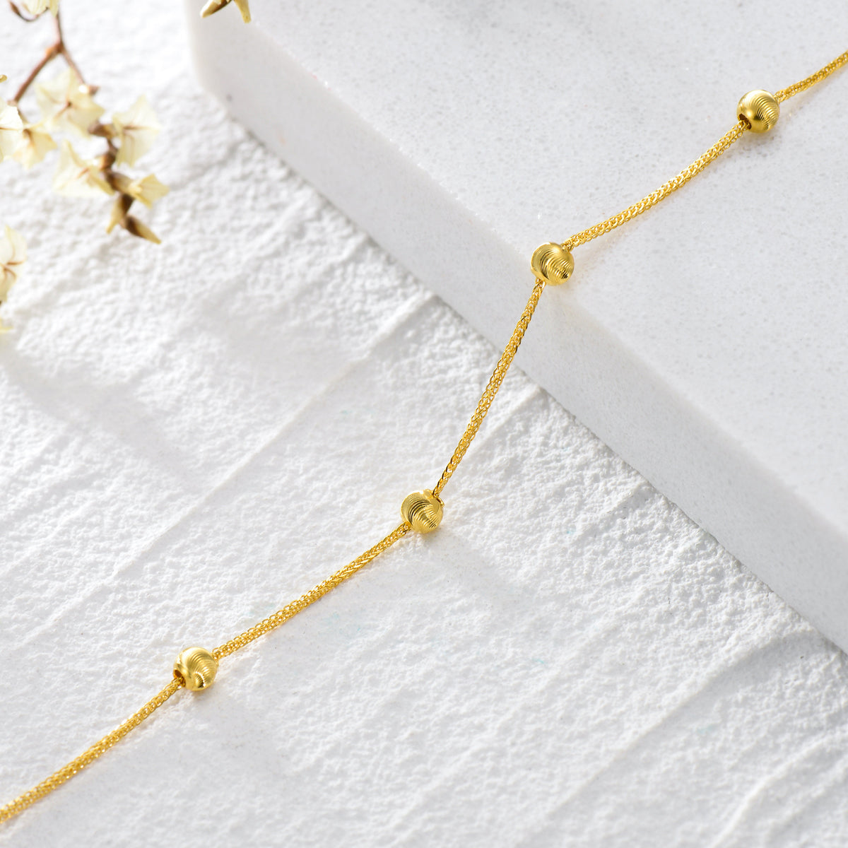 This 18K Gold Ball Bead Station Chain Bracelet by YFN brings understated elegance to women who appreciate minimalist luxury. The smooth gold beads spaced evenly along the chain add subtle texture and sophistication. Lightweight and versatile, this stone-free design pairs effortlessly with both modern and classic jewelry collections.