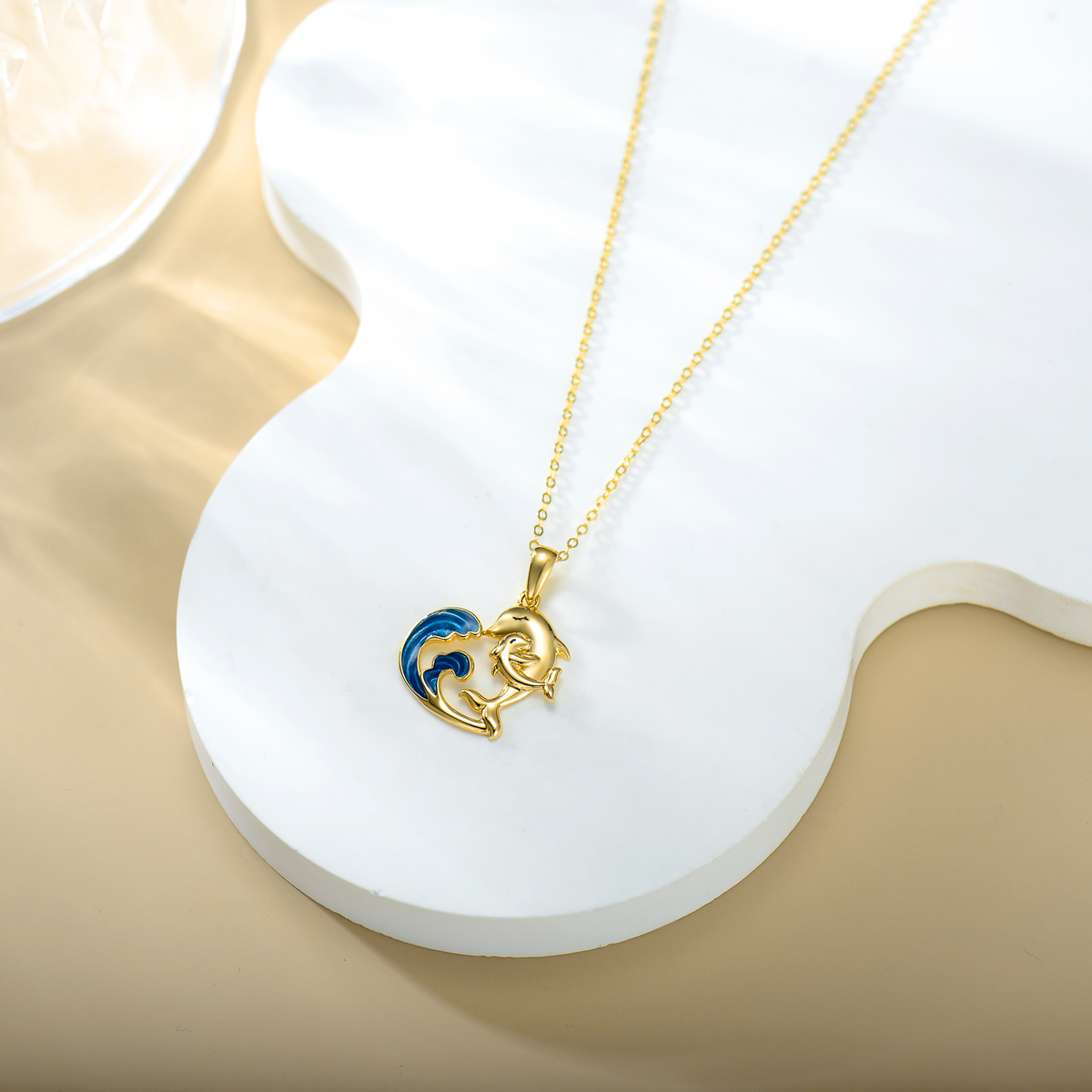 This 14K Gold Dolphin Pendant Necklace by YFN is a stone-free, timeless piece for women. Featuring a finely detailed dolphin sculpted in 14K gold, this exquisite pendant necklace offers a sophisticated design that effortlessly complements any outfit, ideal for those who appreciate minimalism and the allure of the ocean.