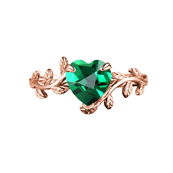 14K Rose Gold Heart Emerald Ivy Ring for Women