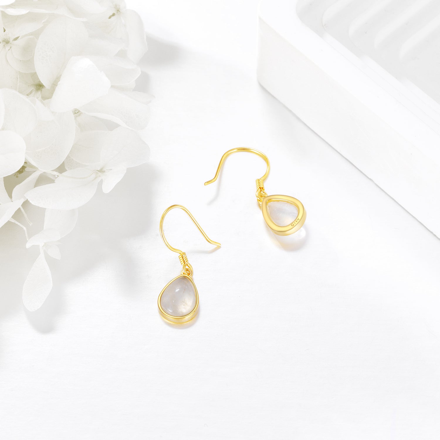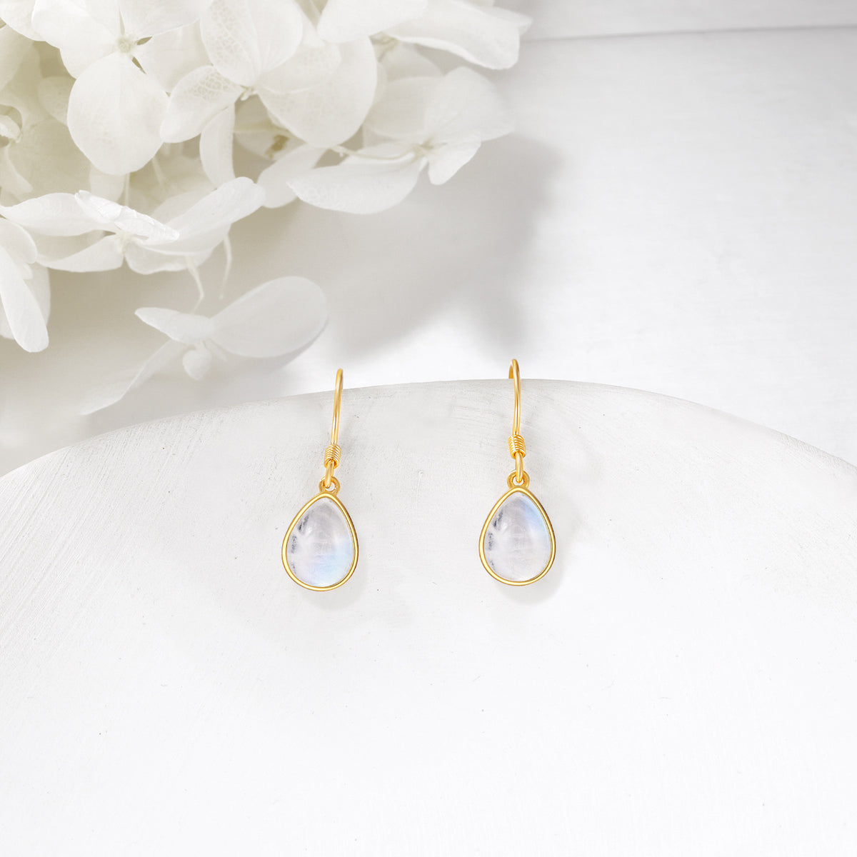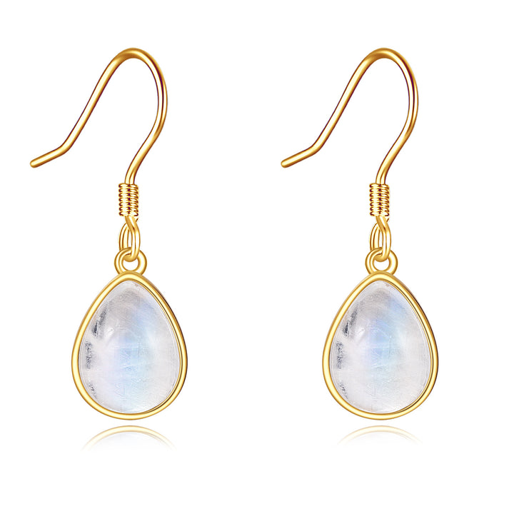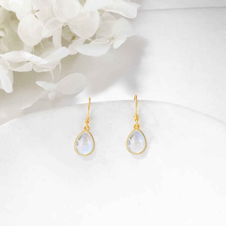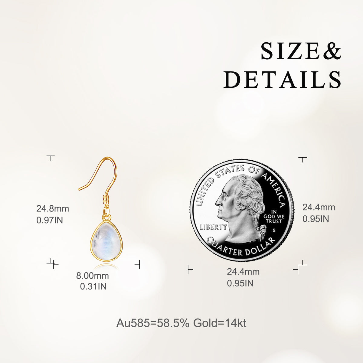 Crafted from solid 14K Gold. These are Drop Shape Drop Earrings set with Moonstone stones.