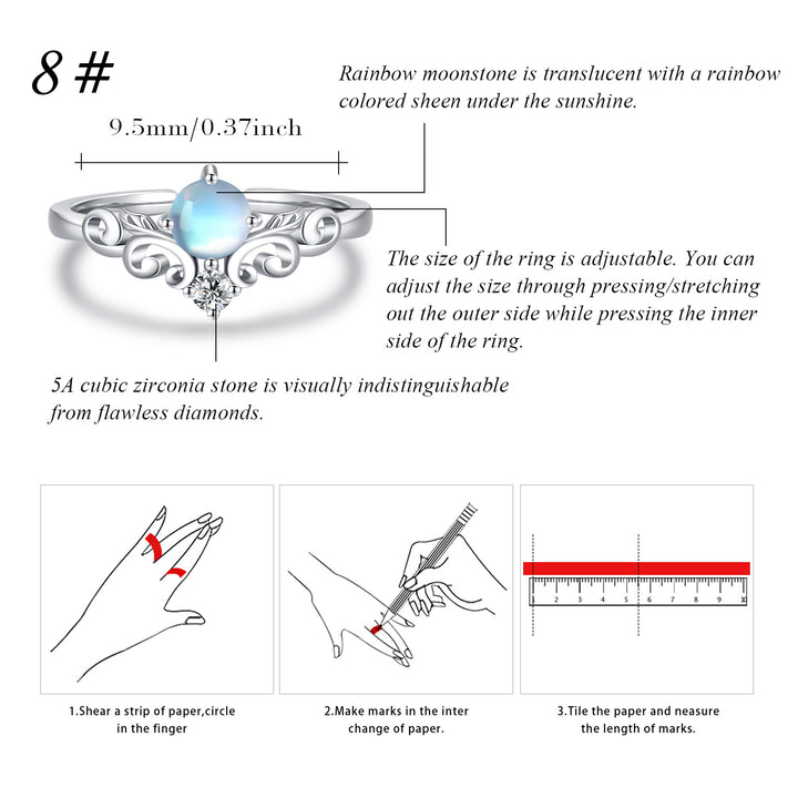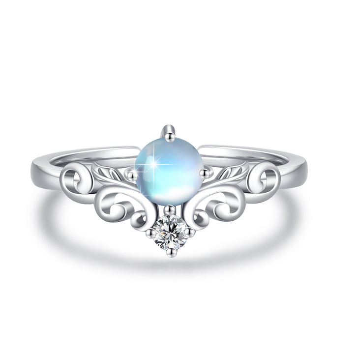 Sterling Silver Round Shaped Moonstone Rainbow Open Ring