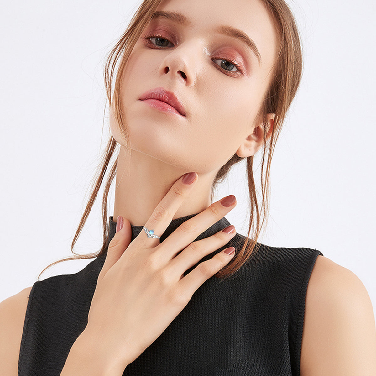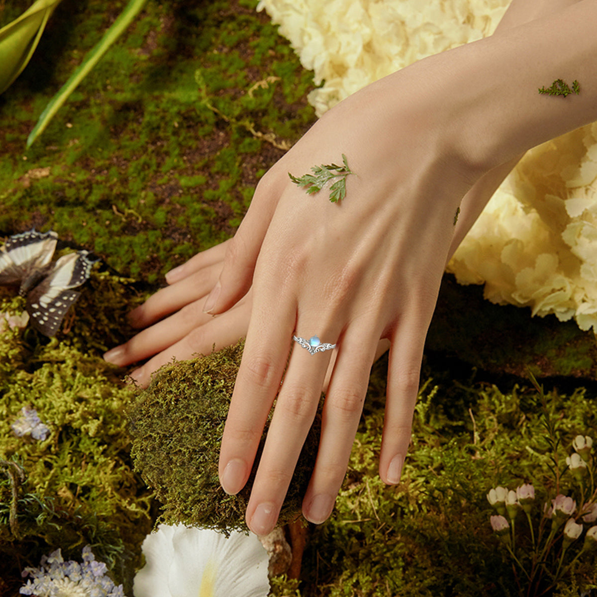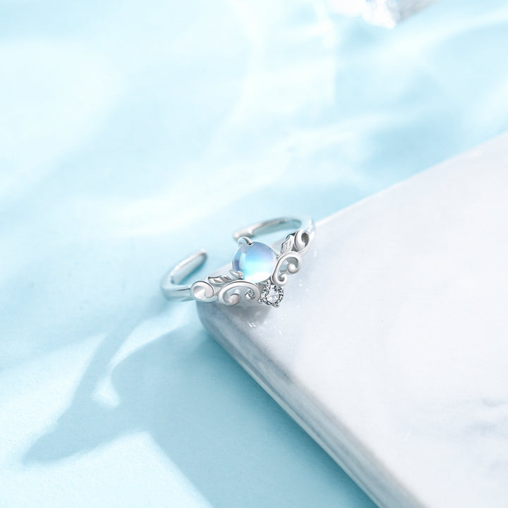 This Sterling Silver Round Shaped Moonstone Rainbow Open Ring by YFN showcases a luminous moonstone that shifts with iridescent color. The open ring silhouette adds contemporary flair, while the white gold plating enhances its ethereal glow. An expressive, elegant piece for women who love mystical gemstones.
