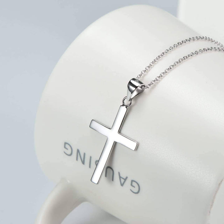 This Sterling Silver Cross Pendant Necklace by YFN offers understated elegance in a unisex design. The clean, stone-free cross reflects faith and simplicity, enhanced by the brilliance of white gold plating. A timeless accessory for daily devotion or refined minimalism.