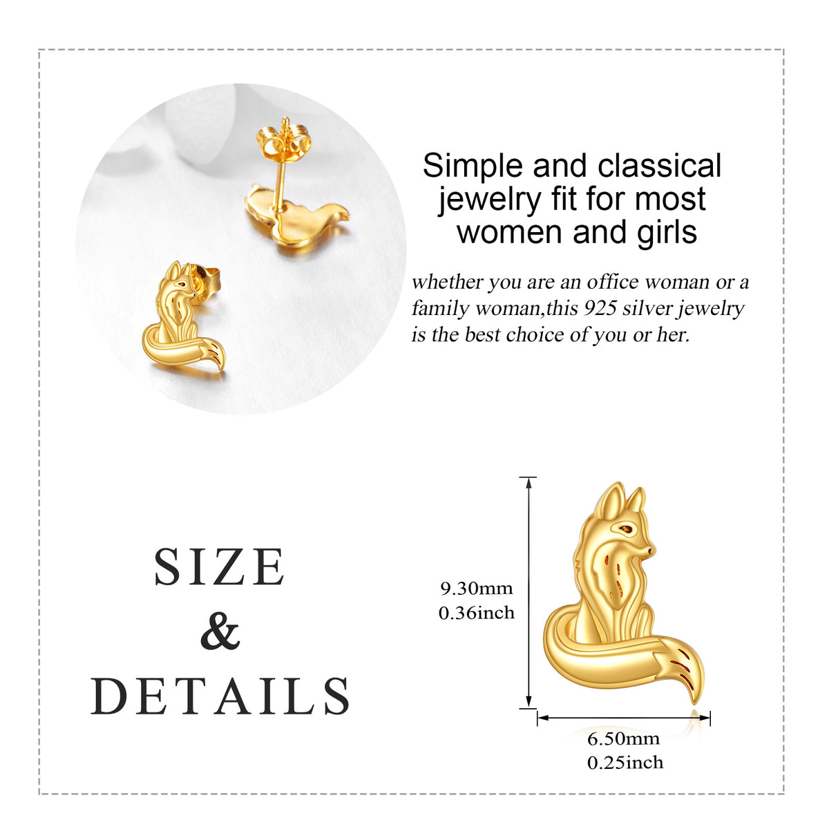 These 14K Gold Fox Stud Earrings by YFN are expertly crafted for women who appreciate the subtle beauty of minimalist design and playful elegance. Made from high-quality 14K gold, the charming fox motif is a testament to refined craftsmanship and timeless style. The absence of stones highlights the sleek, minimalist aesthetic, ensuring durability and a lasting shine. Versatile and chic, these stud earrings are ideal for both everyday wear and special occasions, adding a touch of whimsy to any ensemble.