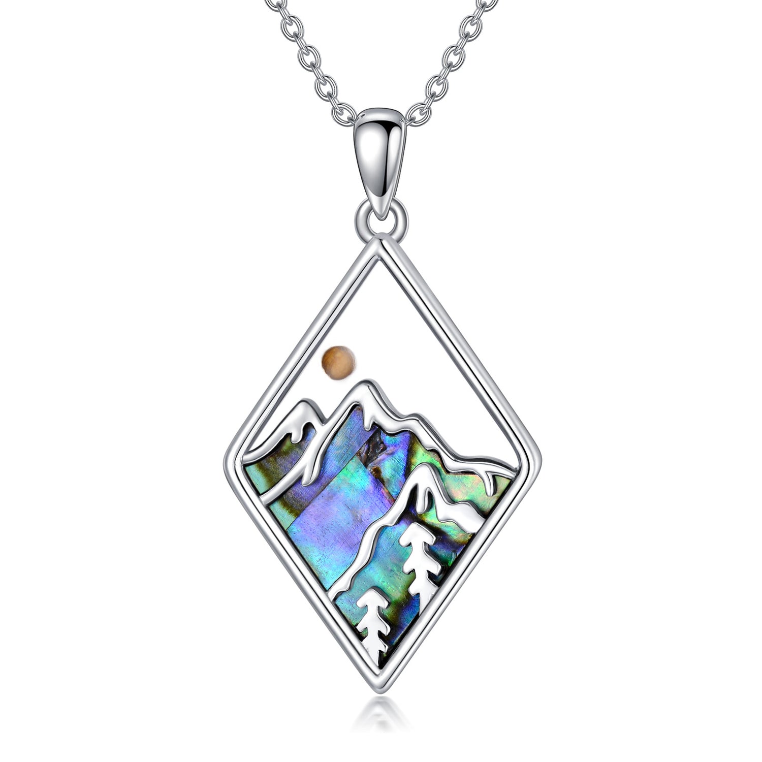 Sterling Silver Abalone Shellfish Mountains & Mustard Seeds Pendant Necklace