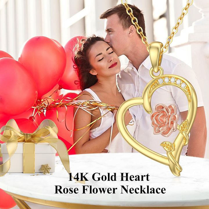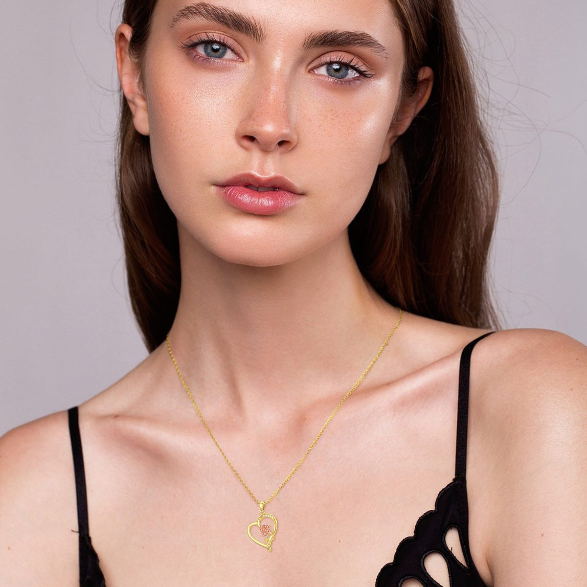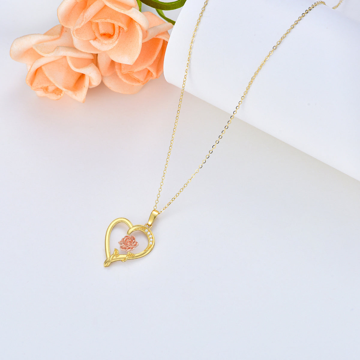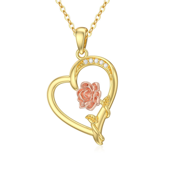 14K Gold Two Tone Moissanite Rose With Heart Pendant Necklace For Women