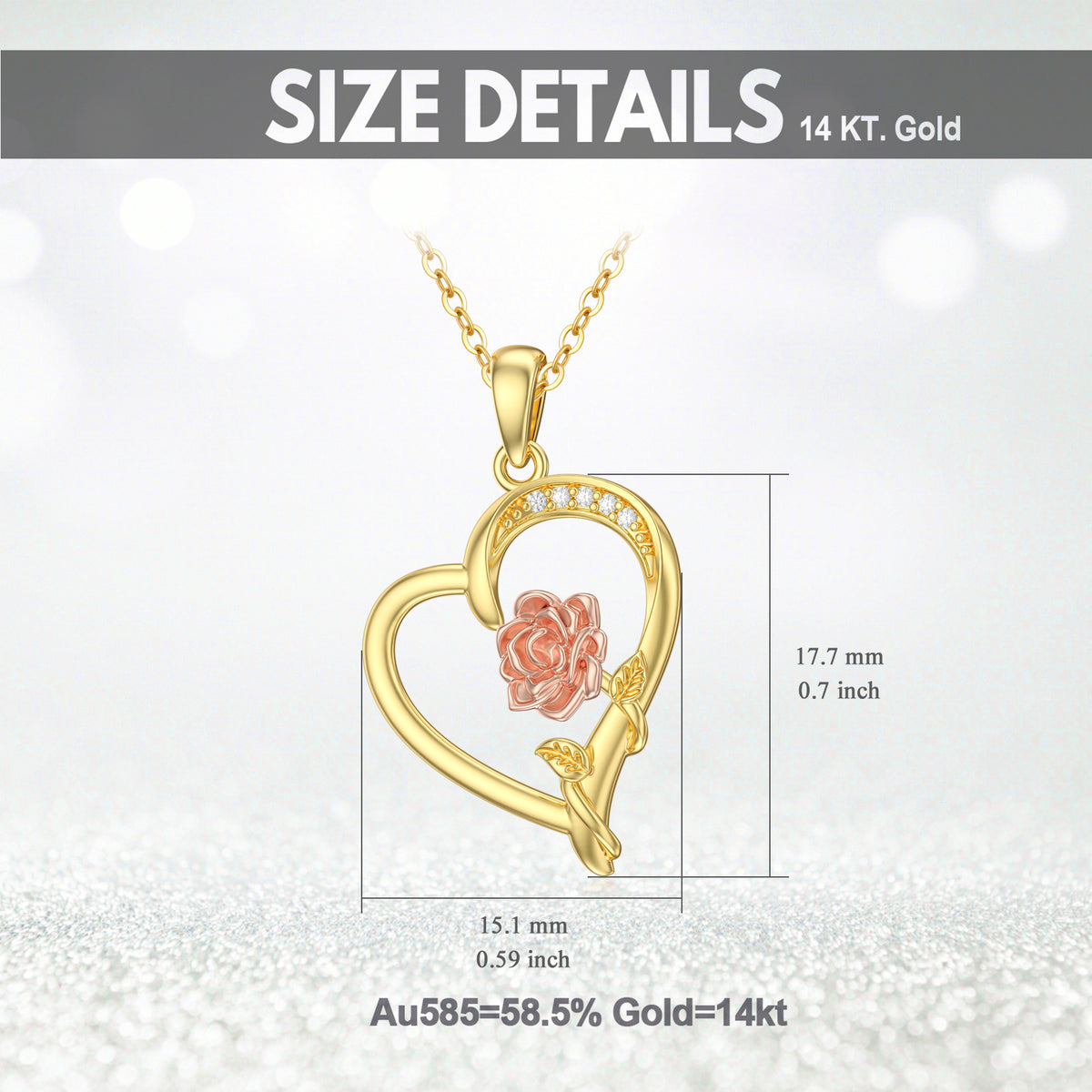Crafted from solid 14K Gold with Rose Gold Accents (Two-Tone). This is a Heart Pendant Necklace featuring a Rose motif, set with a Clear Moissanite stone.
