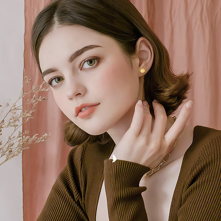 These 9K Gold Bear Stud Earrings by YFN are a charming, minimalist, and playful accessory. The simple bear motif, crafted entirely from 9K gold, offers a whimsical yet understated aesthetic. Stone-free, they emphasize the clean, pure gold finish, exuding a cute, effortless vibe. These versatile studs are perfect for the woman who loves discreet, high-quality jewelry with a touch of unique personality and everyday wearability.