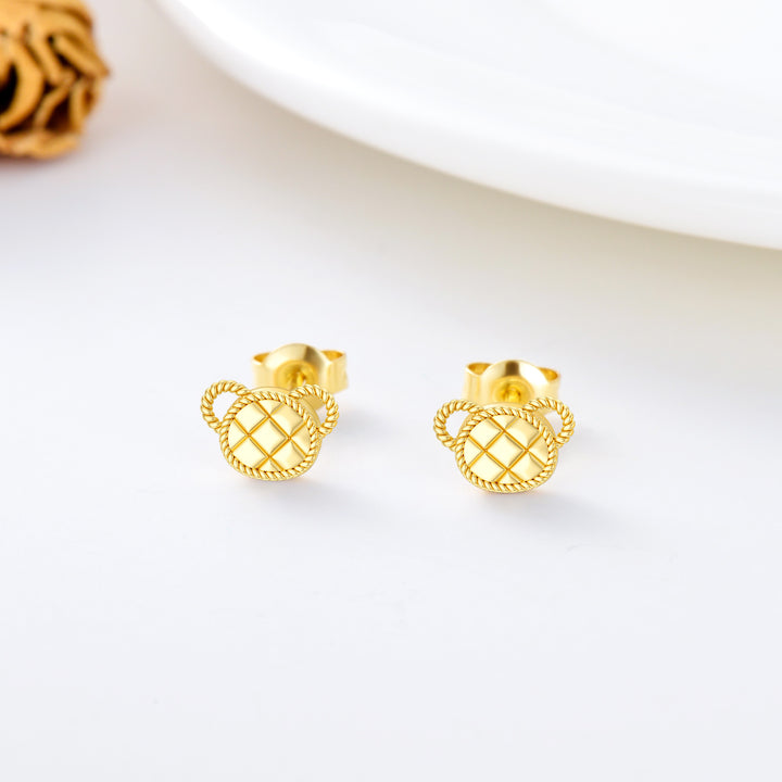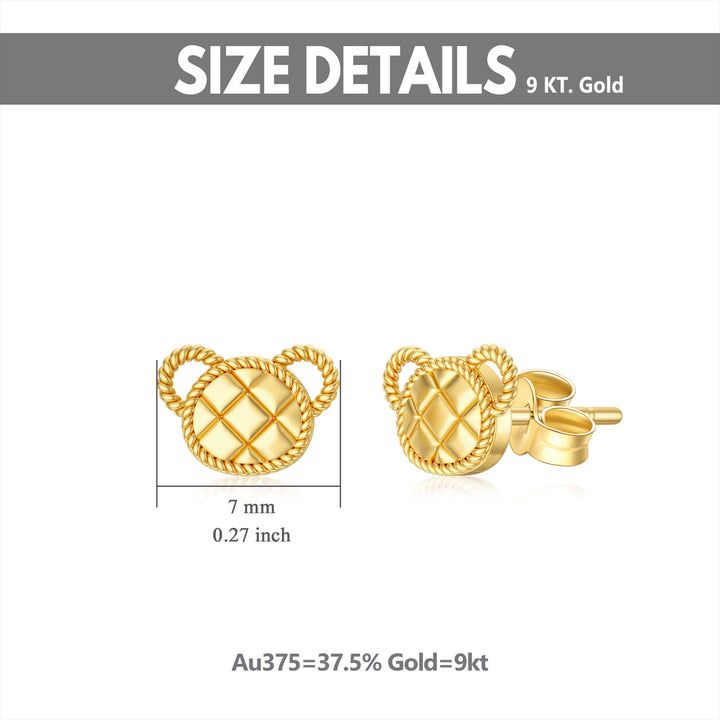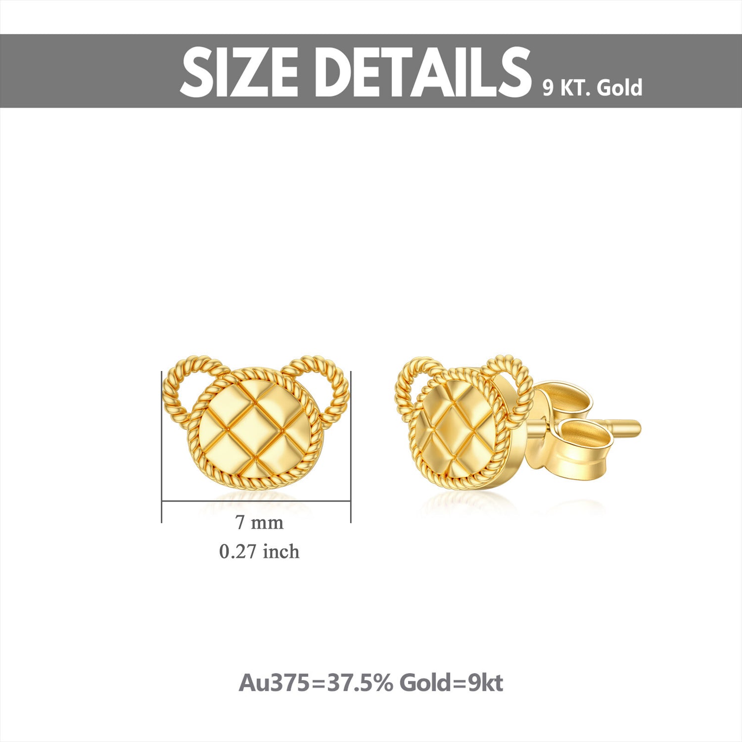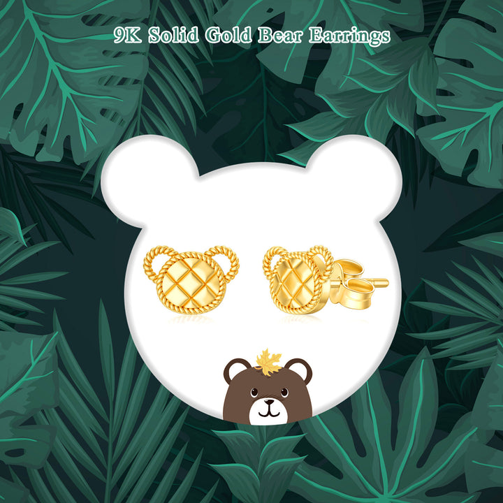 Handcrafted stud earrings made from 9K solid gold. Features a bear motif. Stone-free design.