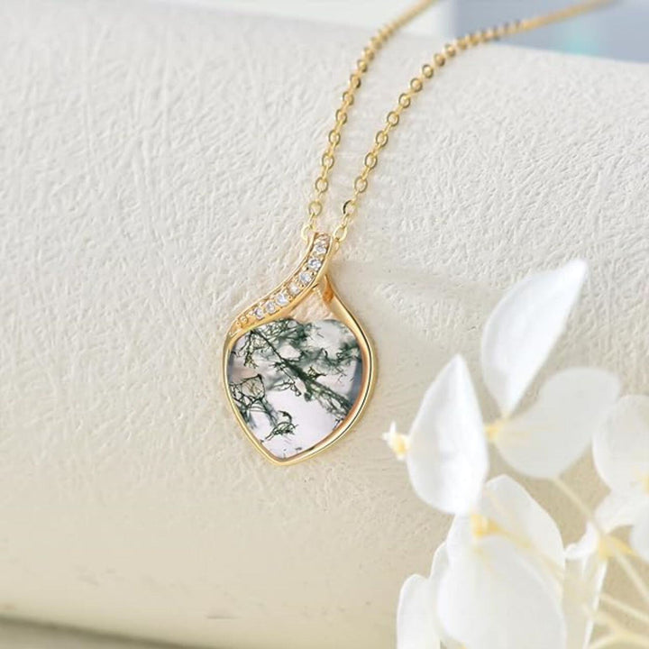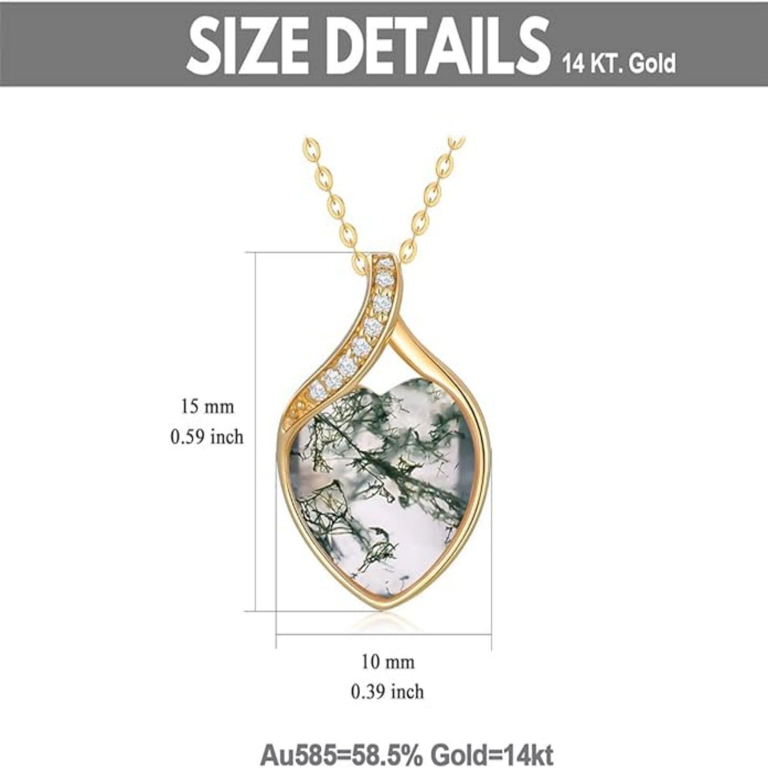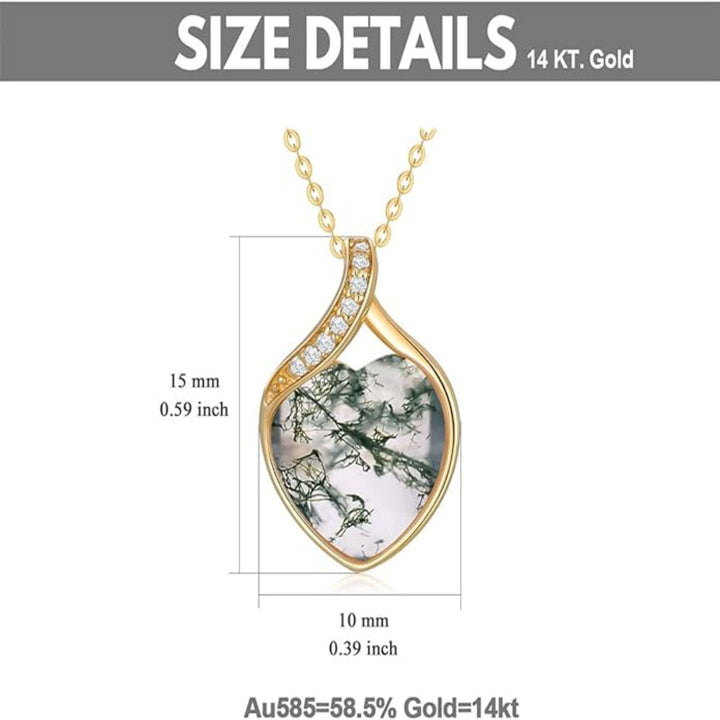 14K Gold Diamond & Moss Agate Heart Pendant Necklace