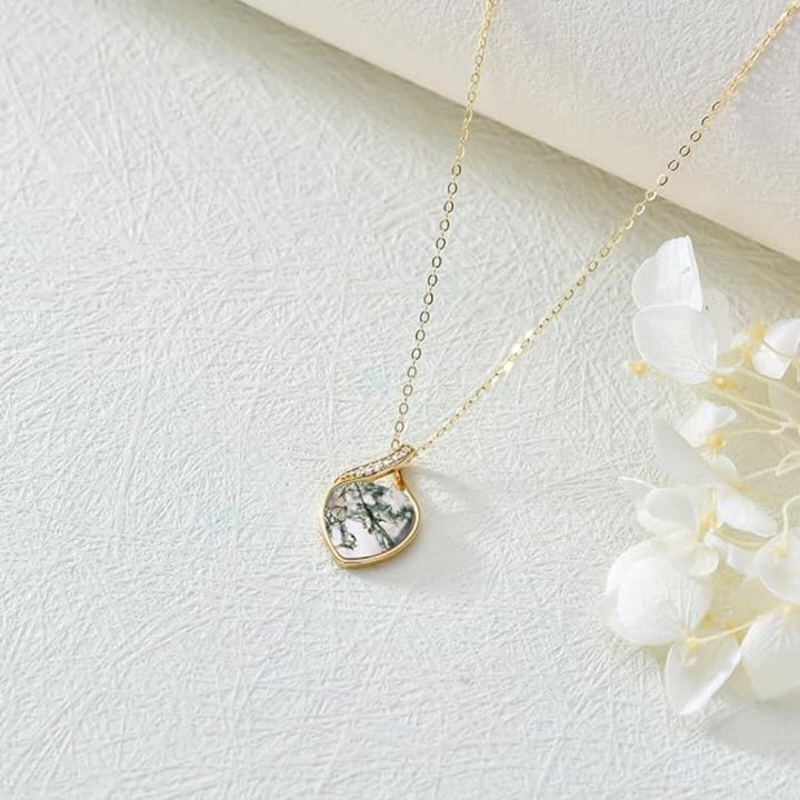 This 14K Gold Diamond & Moss Agate Heart Pendant Necklace by YFN pairs the grounding beauty of moss agate with the brilliance of a fine diamond. Set in gold, this heart-shaped pendant represents love, serenity, and refined femininity.