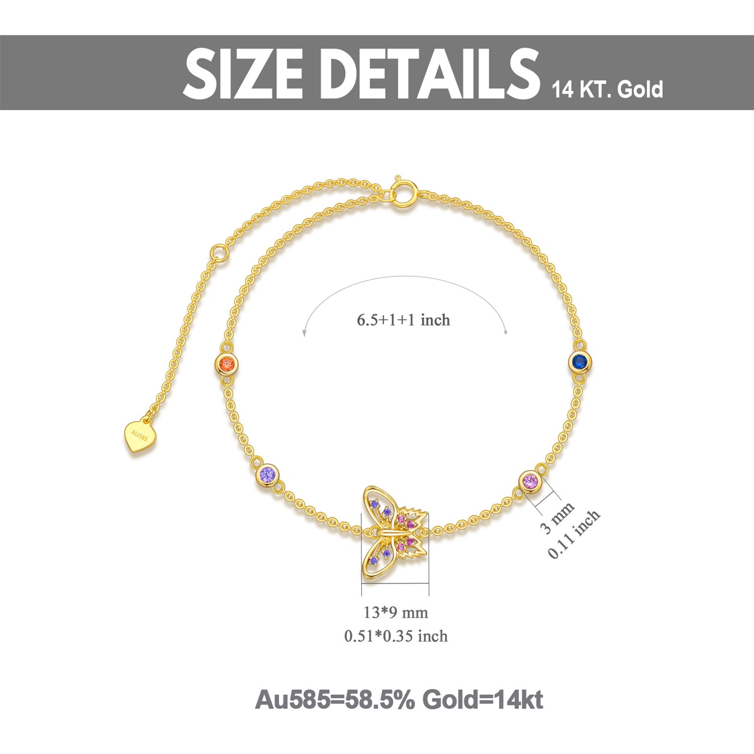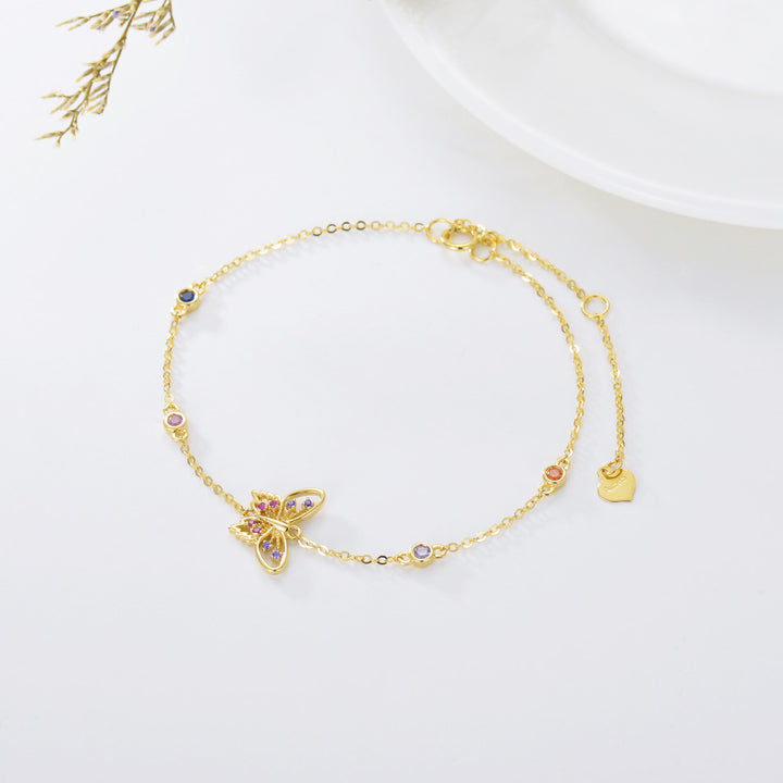 14K Gold Cubic Zirconia Butterfly Charm Bracelet