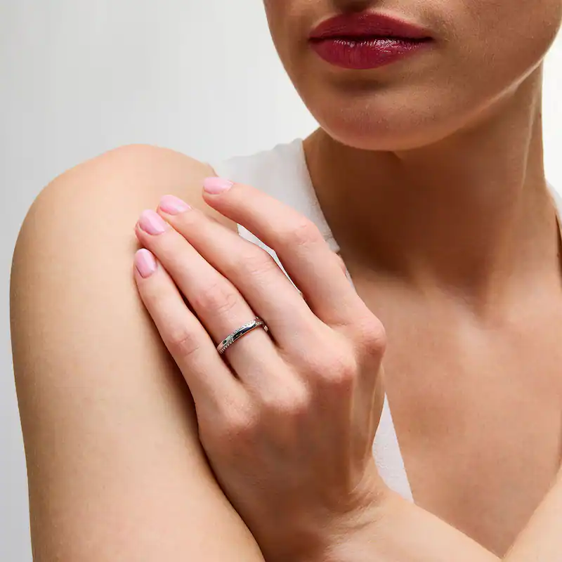 This 14K White Gold Round Diamond Stackable Anniversary Band by YFN is a classic and elegant testament to enduring commitment, designed for sophisticated stacking. The alternating double row of round diamonds, set in luminous white gold, creates a dazzling, geometric aesthetic. With superior polish, cut, and symmetry, this I-color, I2-clarity ring exudes a bright, celebratory vibe, perfect for marking an anniversary or as a beautiful stacking band, offering lasting sparkle and traditional luxury.