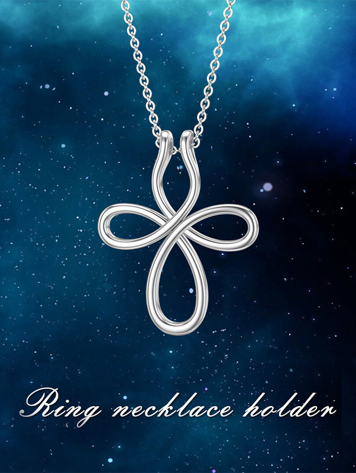 Sterling Silver Cross Knot & Ring Holder Pendant Necklace