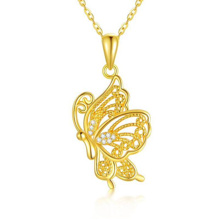 This 14K Gold Cubic Zirconia Butterfly Pendant Necklace by YFN is an exquisite piece designed to make every woman shine. Crafted with precision, this butterfly pendant necklace showcases stunning Cubic Zirconia set in 14K gold, blending timeless beauty with modern sophistication. Perfect for any occasion, this charming accessory not only adds a touch of luxury but also celebrates feminine grace, ensuring enduring quality and style in every woman's jewelry collection.