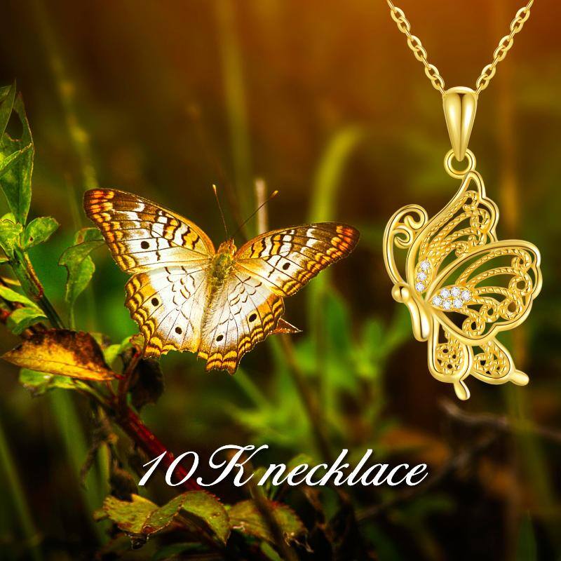 This Women's Pendant Necklace is crafted from 14K Gold, Featuring a Butterfly Pendant Adorned with Glistening Cubic Zirconia.
